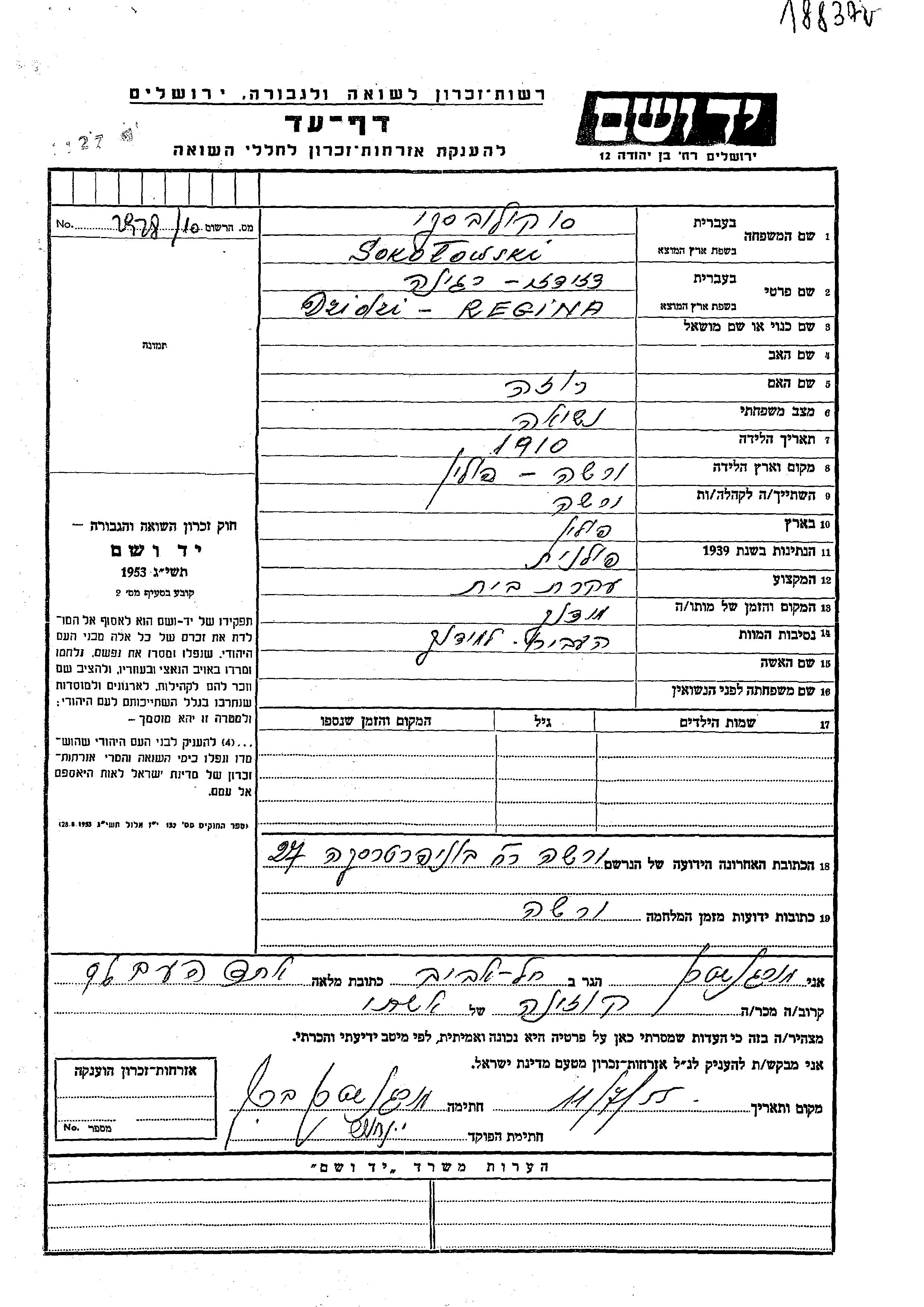 Yad Vashem - Colección conmemorativa de Hojas de Testimonio