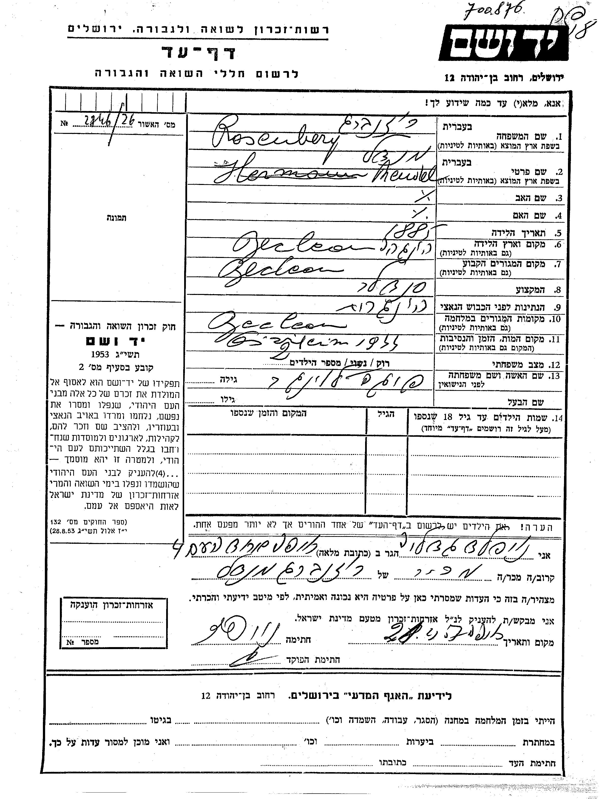 Yad Vashem - Colección conmemorativa de Hojas de Testimonio