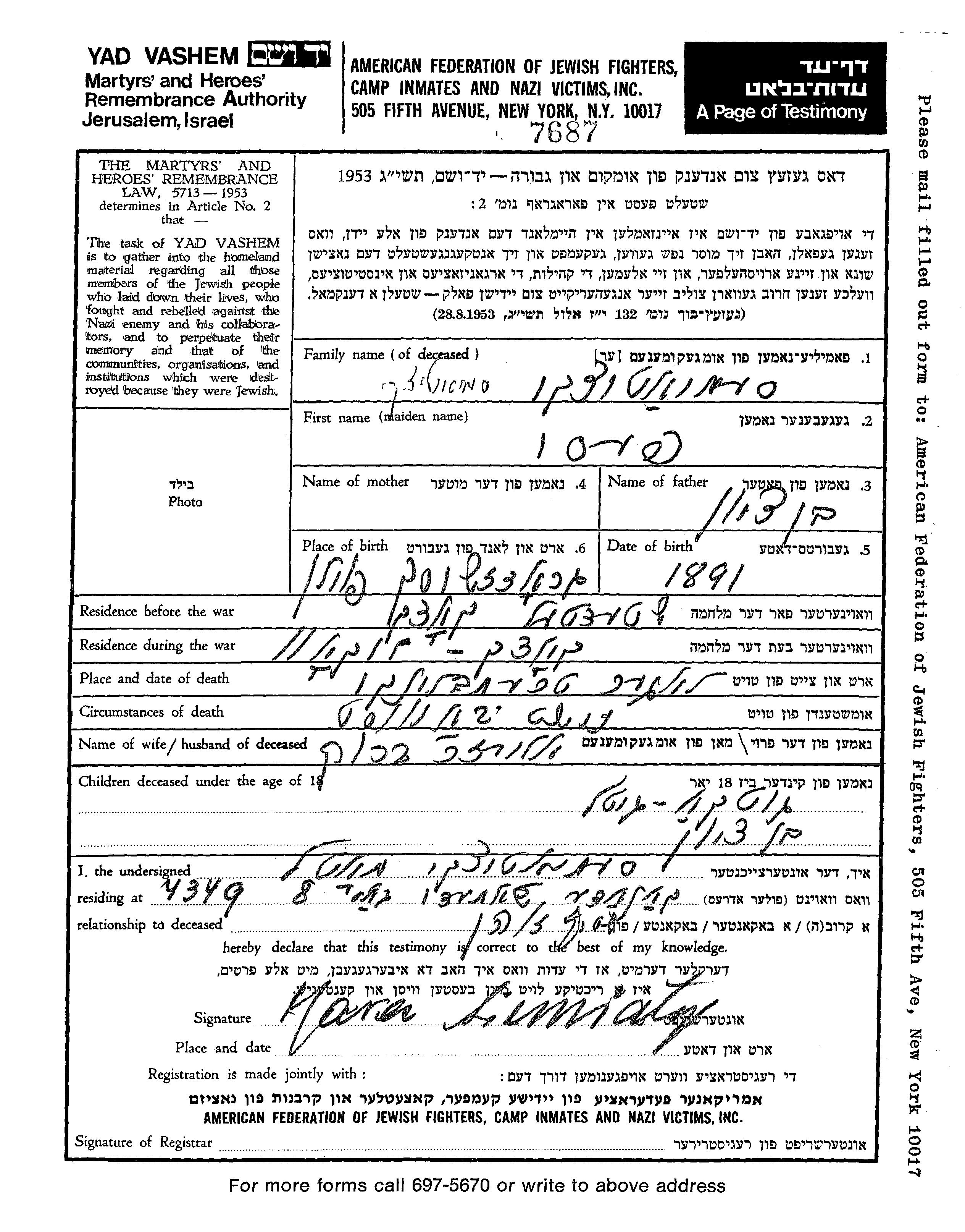 Yad Vashem - Colección conmemorativa de Hojas de Testimonio