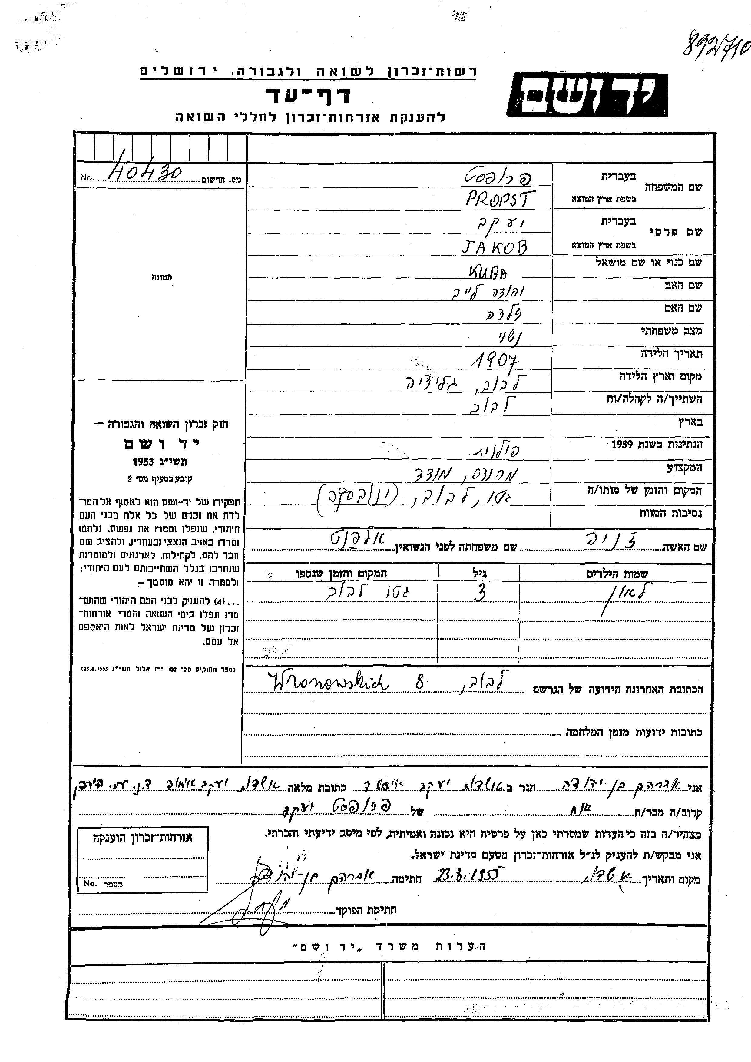 Propst Leon Lwow, Polonia Hoja de Testimonio