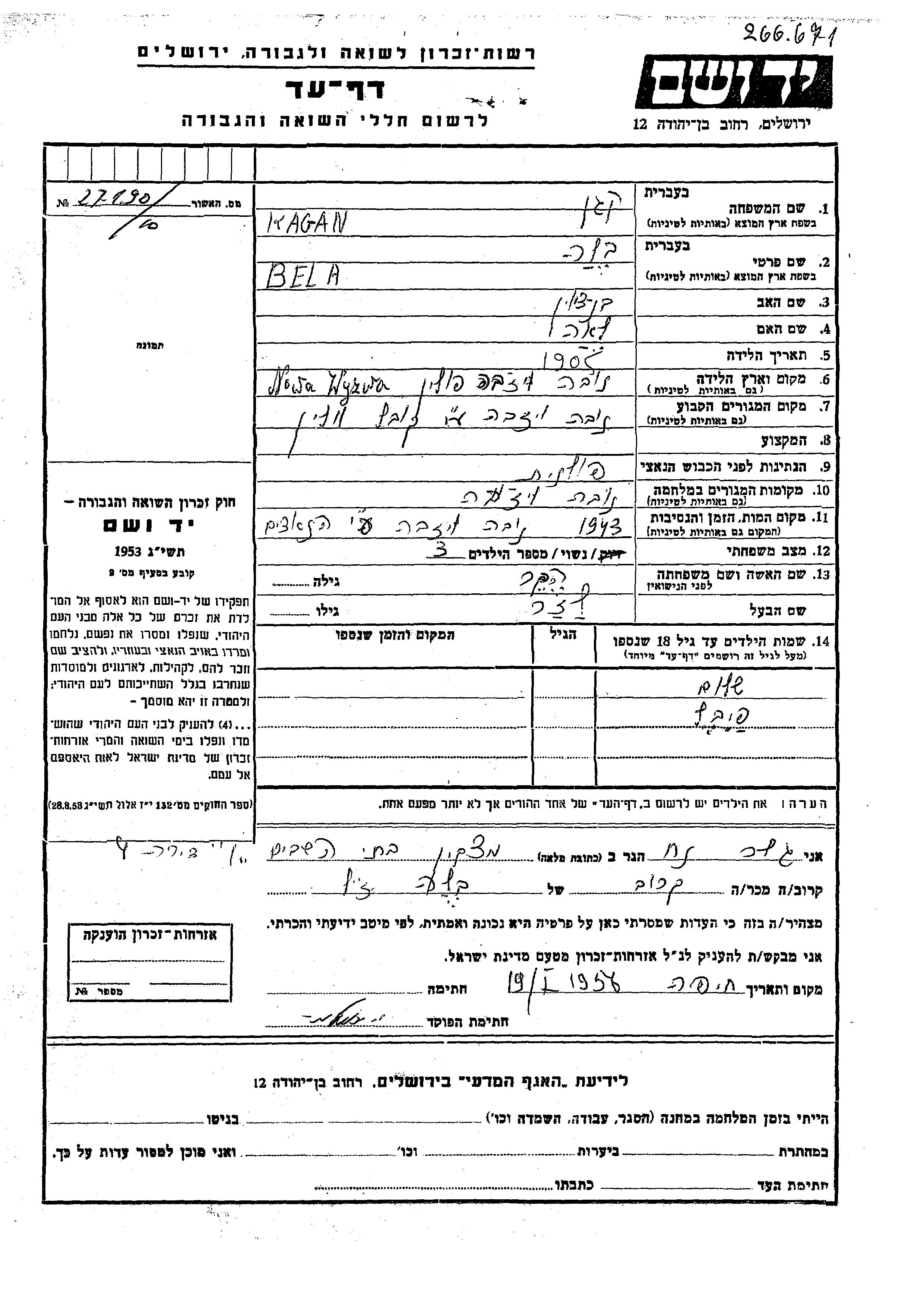 Yad Vashem - Colección conmemorativa de Hojas de Testimonio