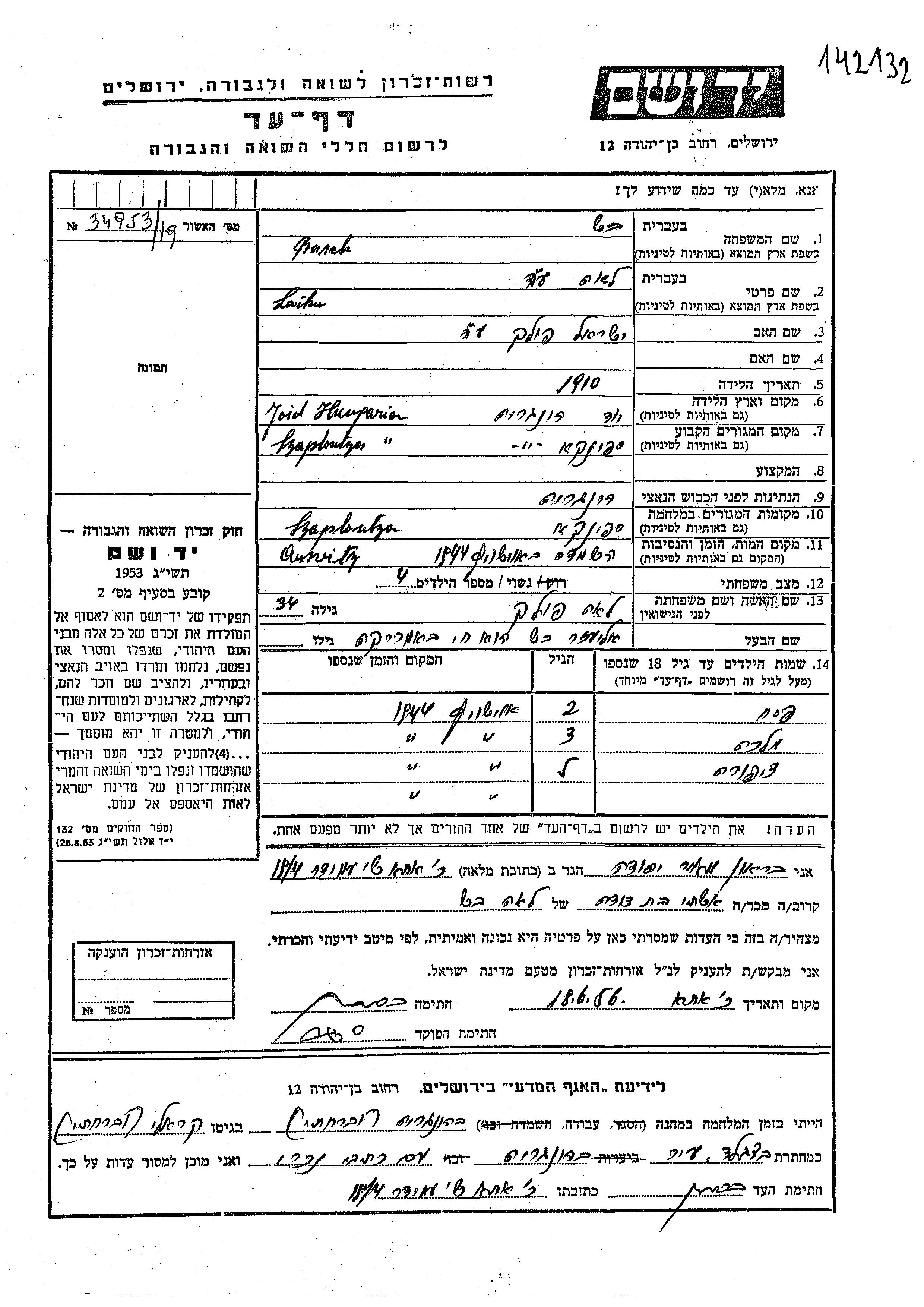 Yad Vashem - Colección conmemorativa de Hojas de Testimonio