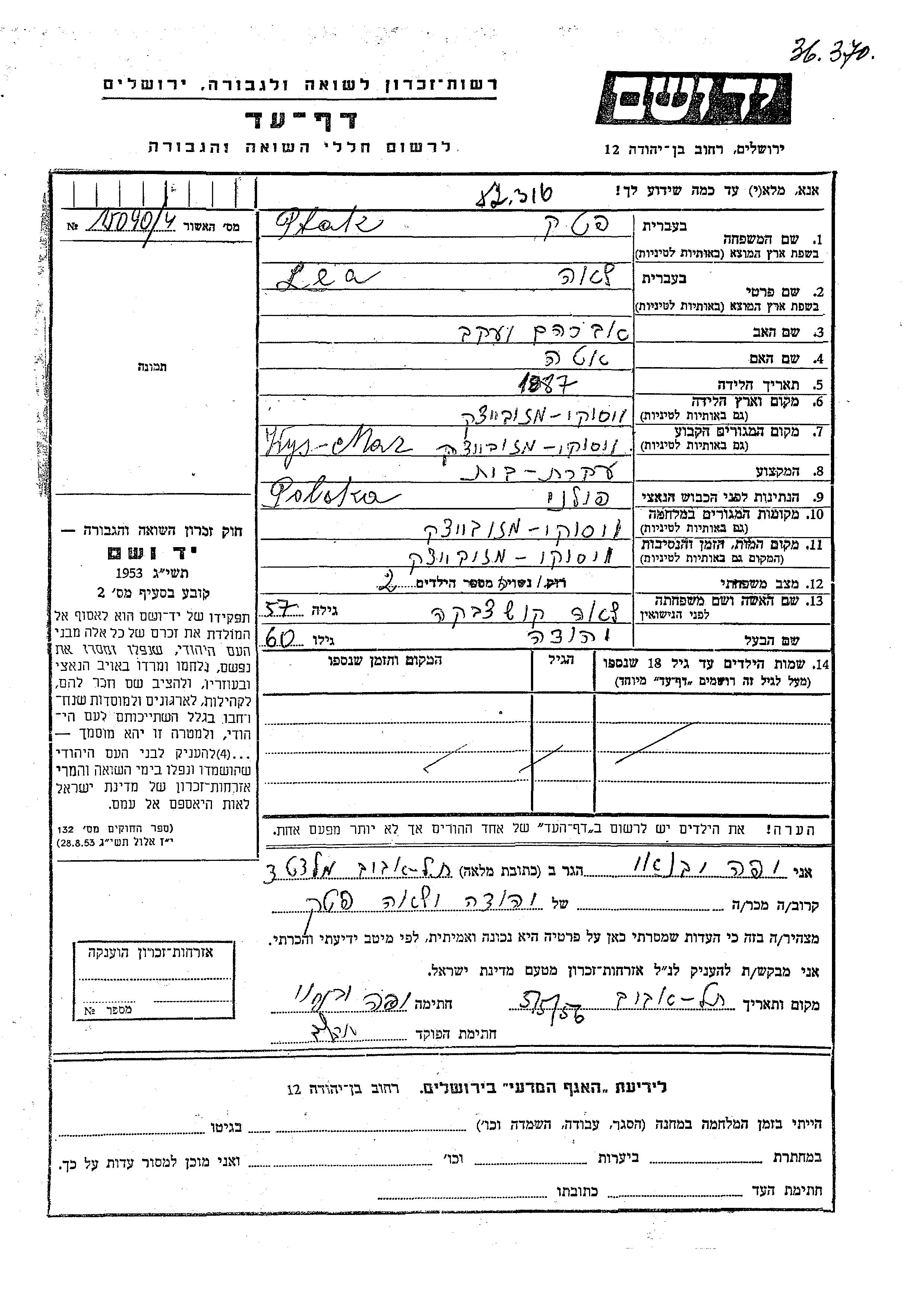 Lea fue asesinada durante la Shoá. Lugar de la muerte: Wysokie Mazowieckie, Polonia.