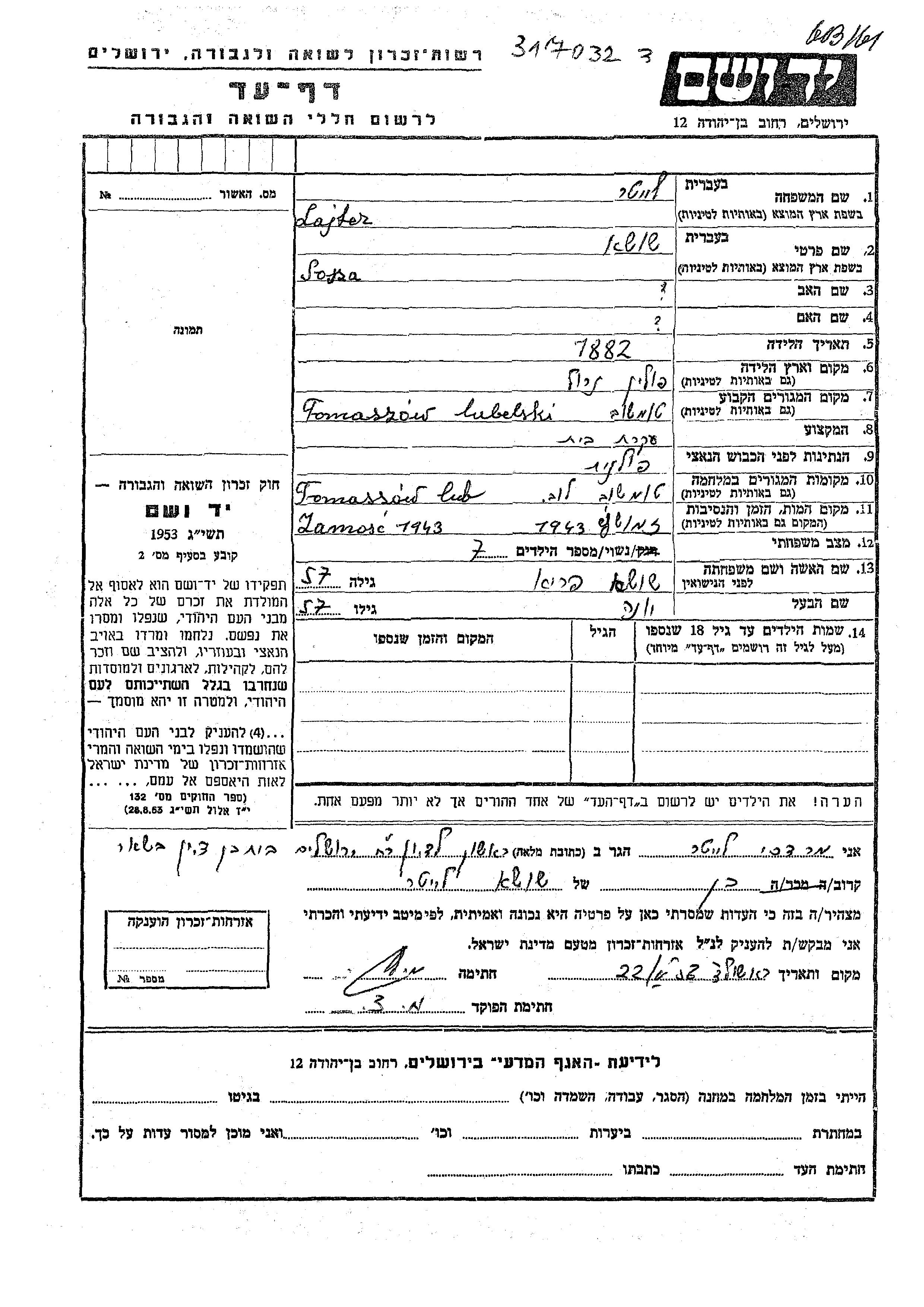 Yad Vashem - Colección conmemorativa de Hojas de Testimonio