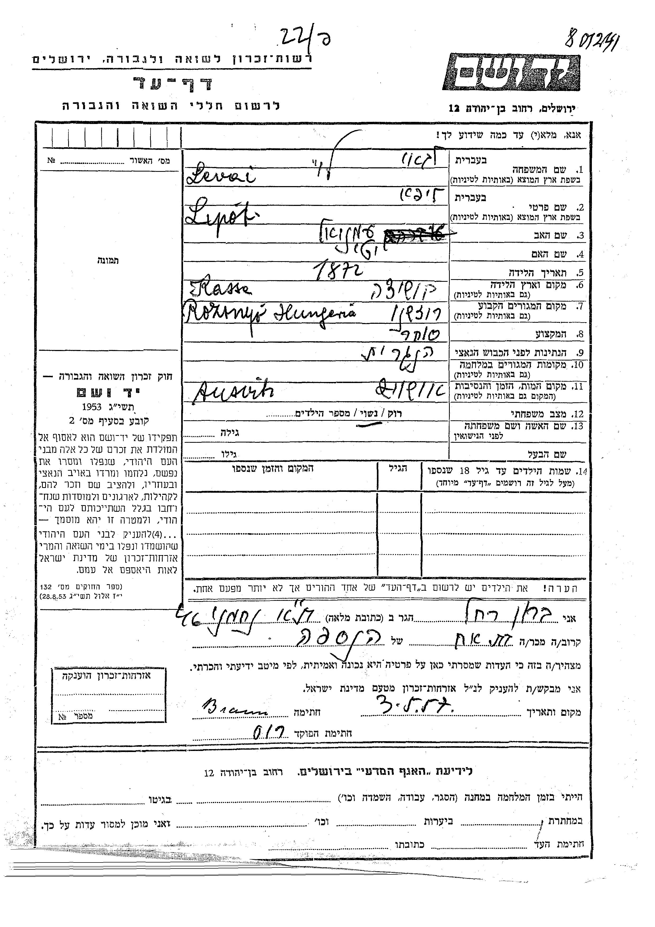 Durante la Guerra/Shoá: