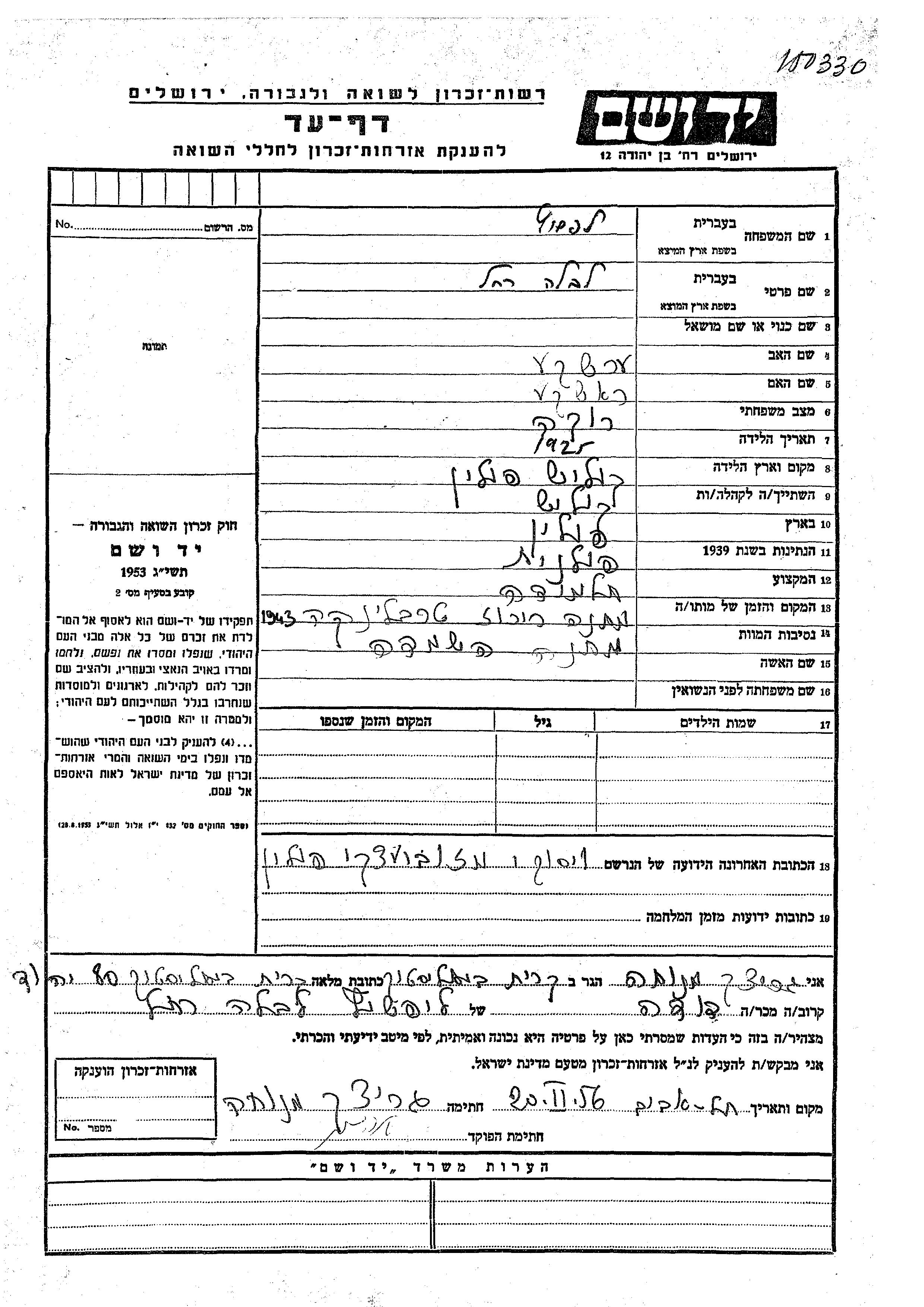 Lifshitz | Lebele Rakhel | 1925 | Kulisz, Polonia | Hoja de Testimonio |