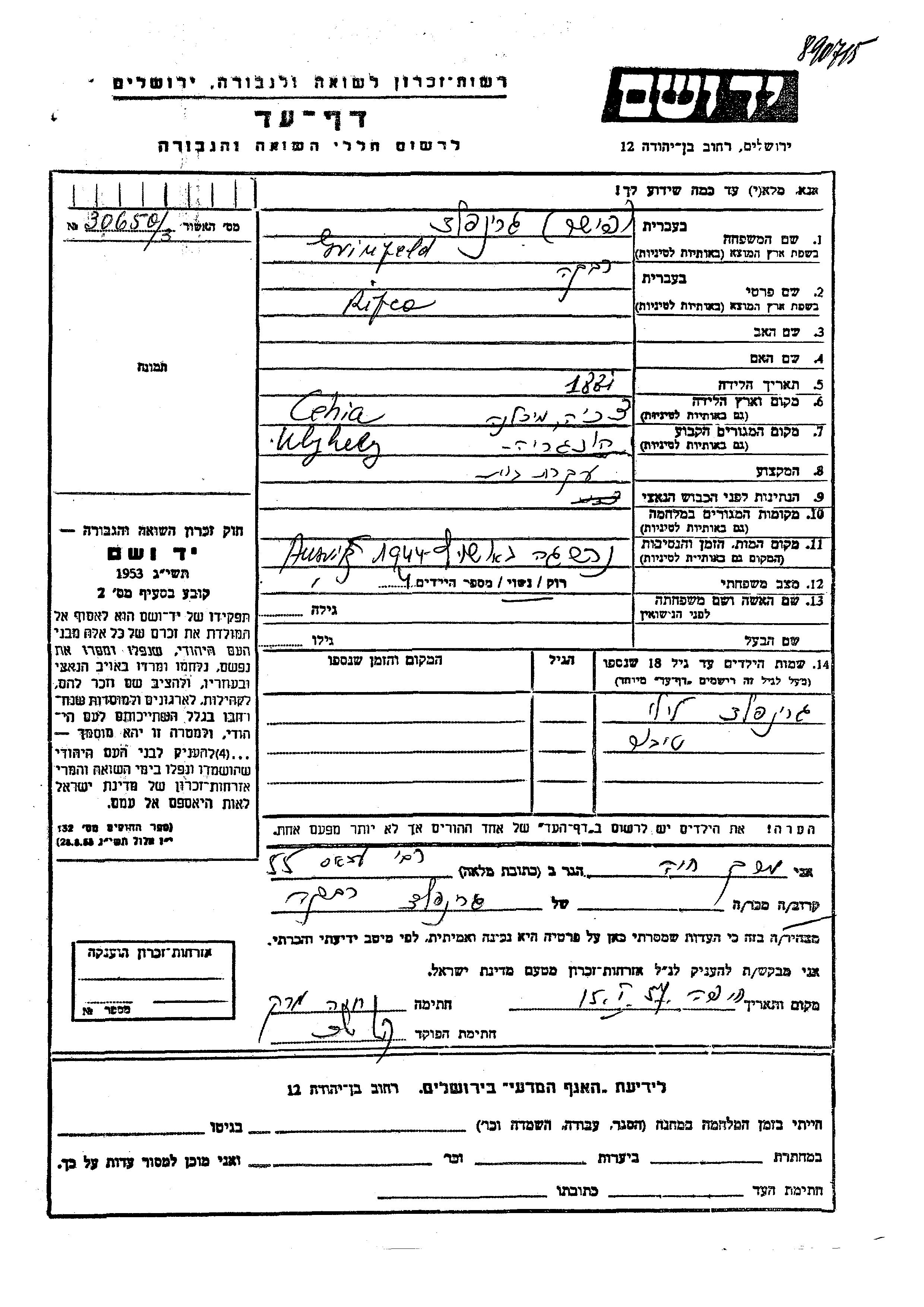 Yad Vashem - Colección conmemorativa de Hojas de Testimonio