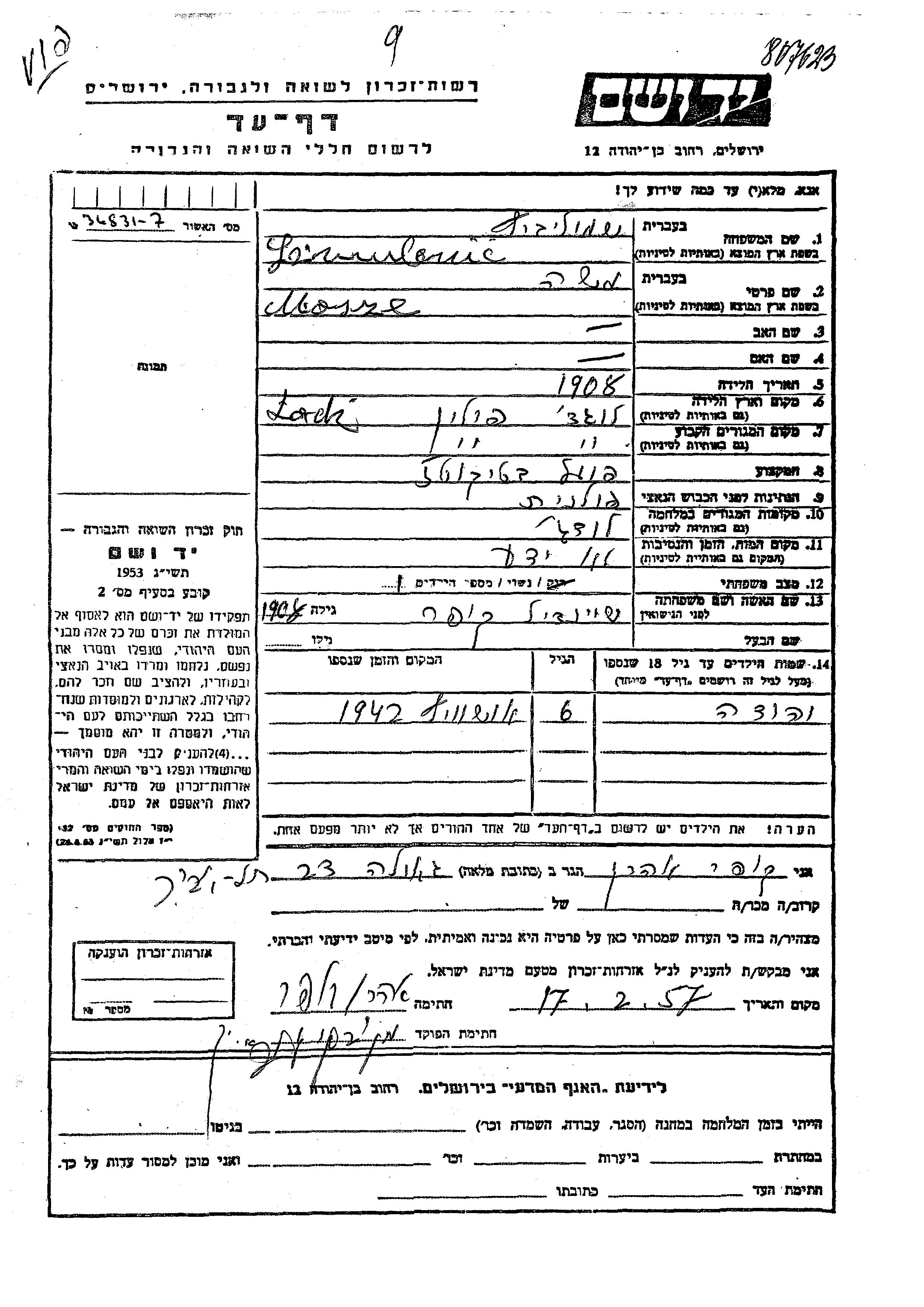 Yad Vashem - Colección conmemorativa de Hojas de Testimonio