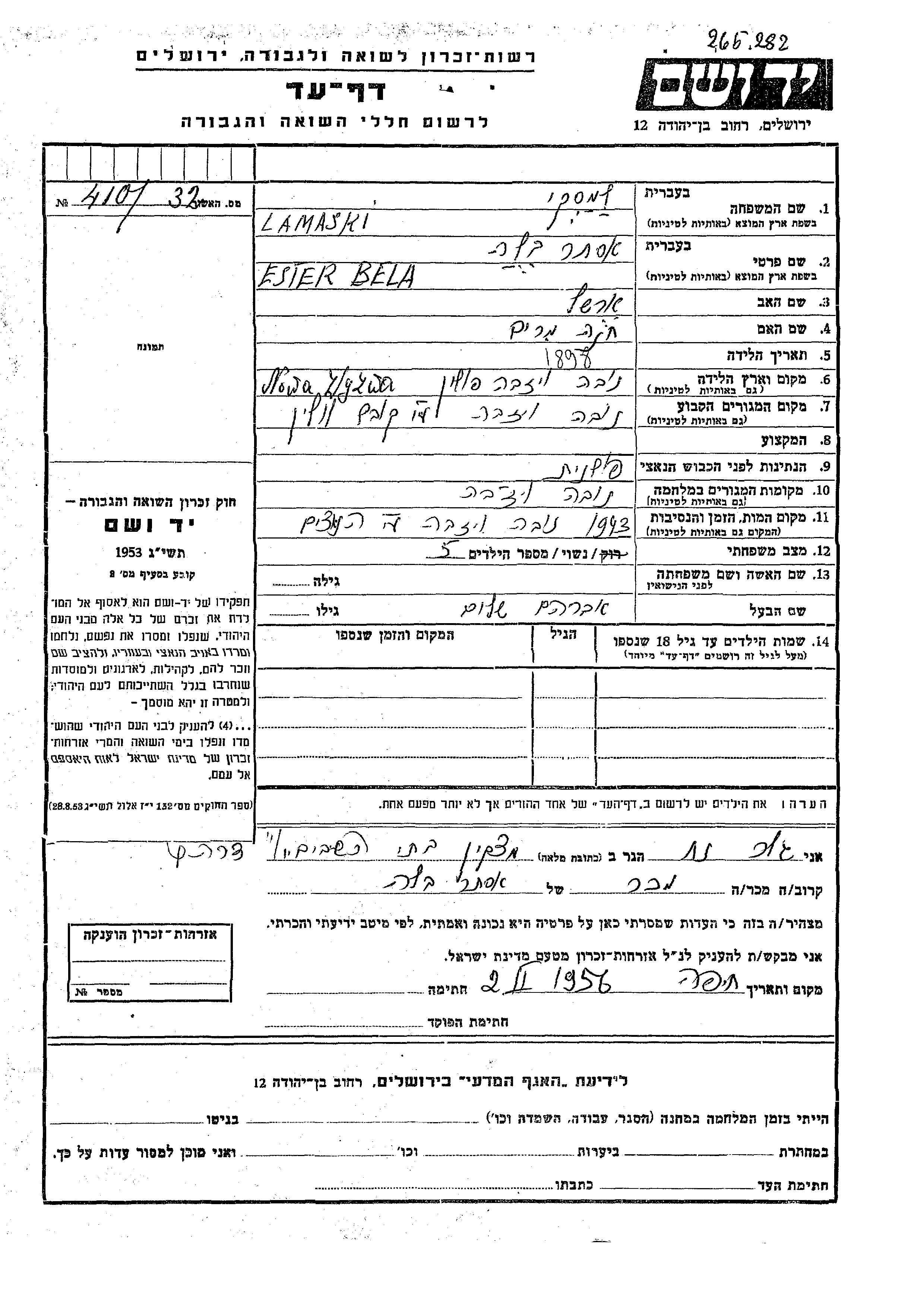 Yad Vashem - Colección conmemorativa de Hojas de Testimonio