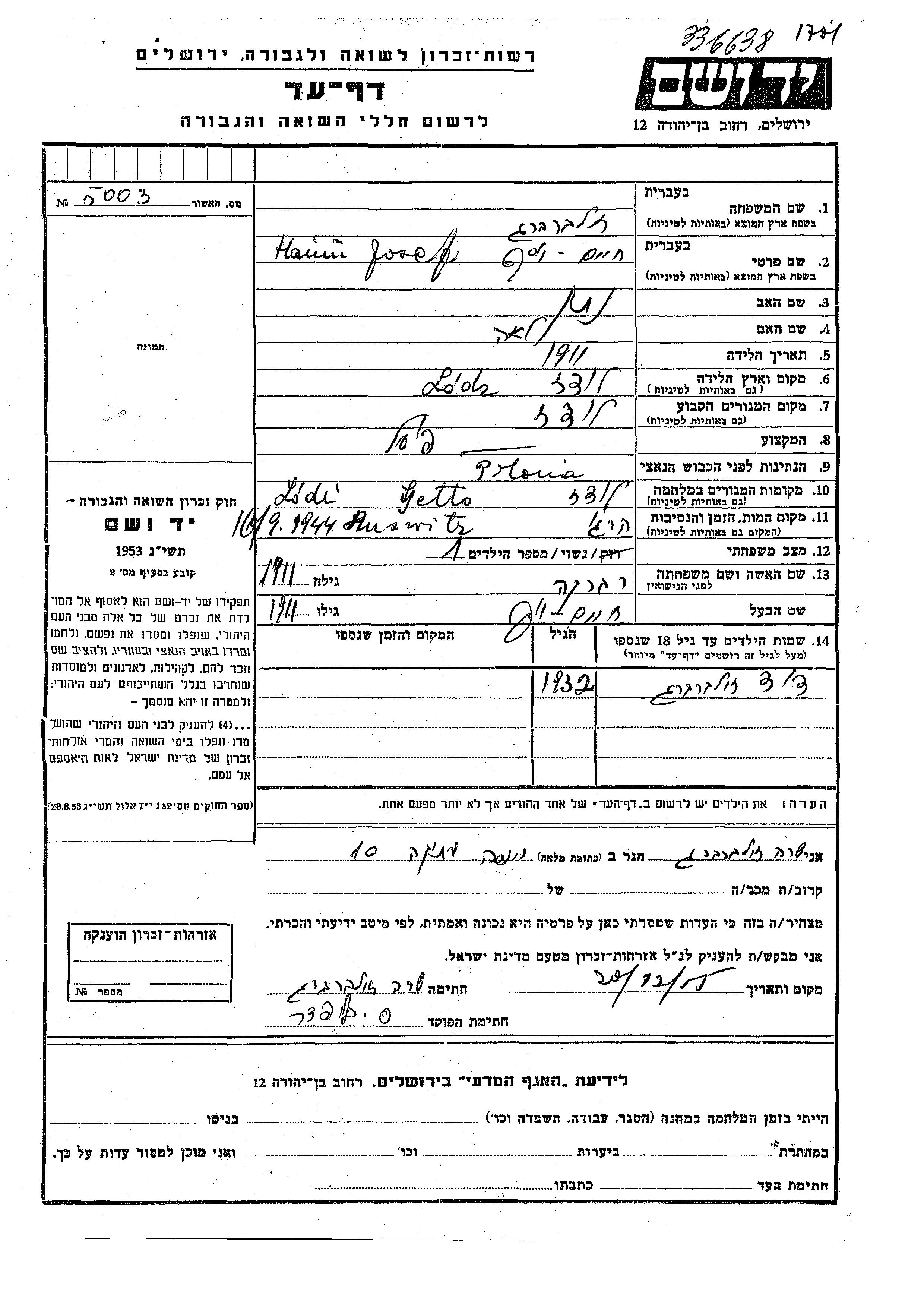 Yad Vashem - Colección conmemorativa de Hojas de Testimonio