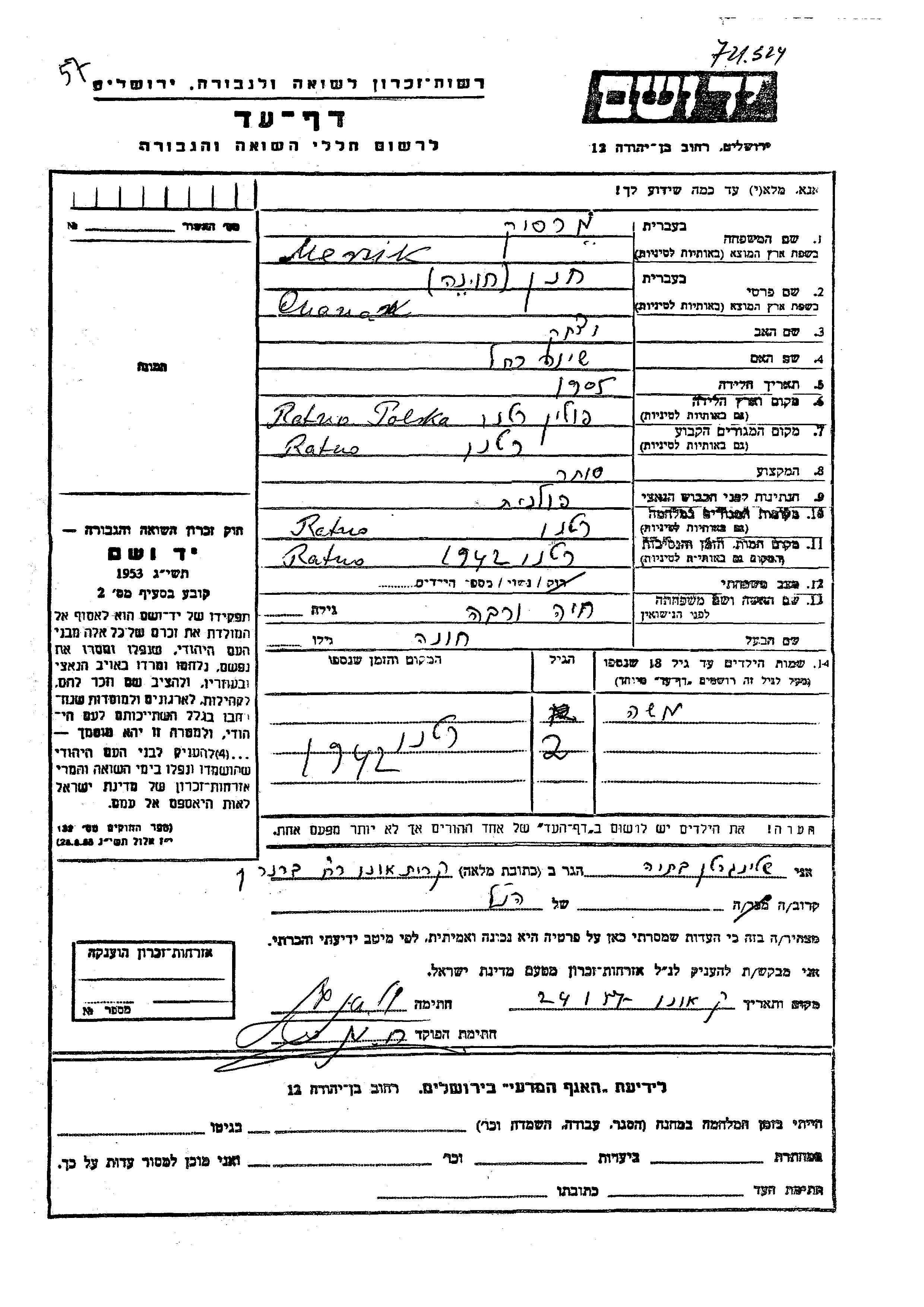 Mersik Moshe Ratno, Polonia Hoja de Testimonio