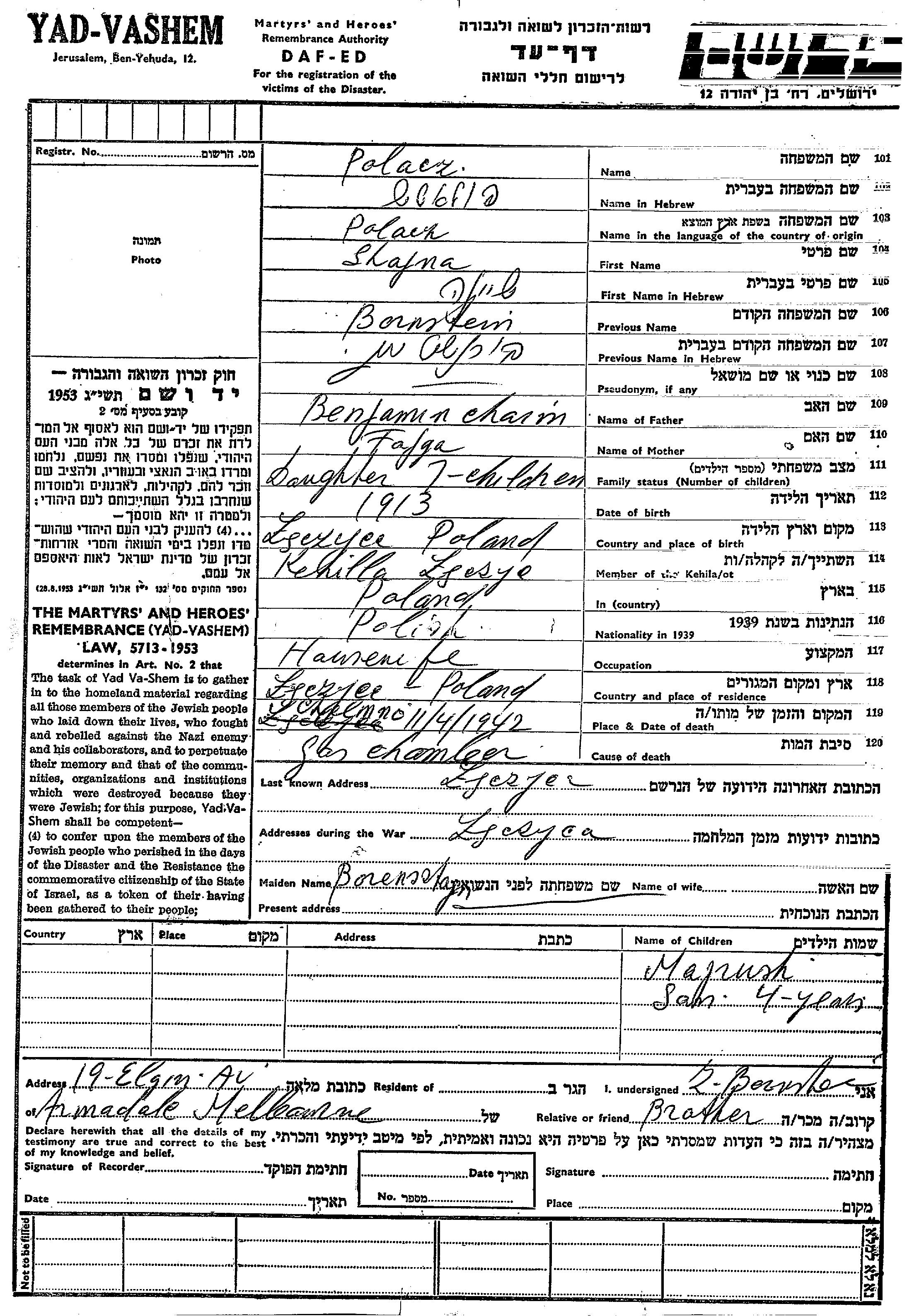 Polacz Sari Leczyca, Polonia Hoja de Testimonio