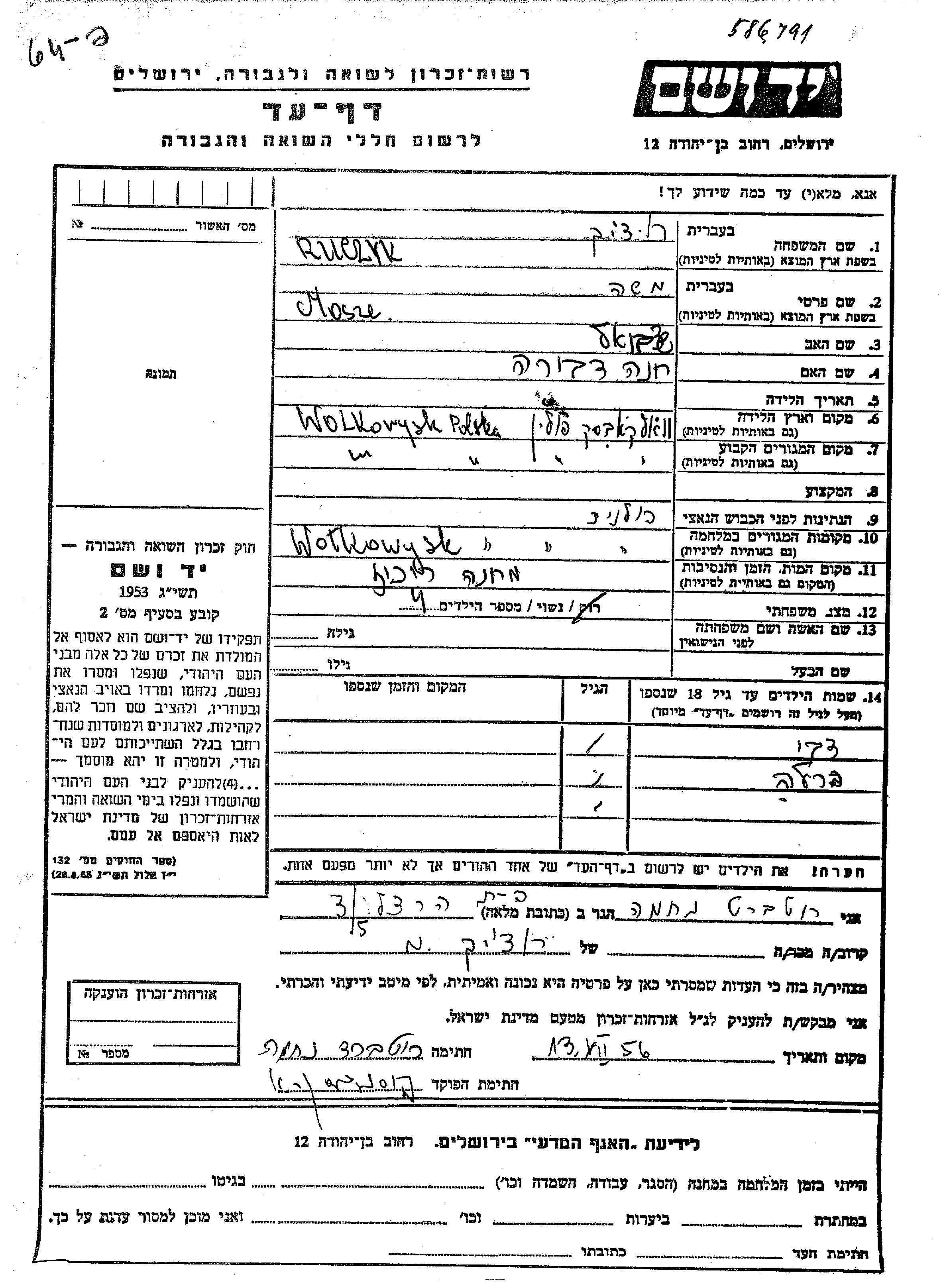 Ruczyk Berele Wolkowysk, Polonia Hoja de Testimonio