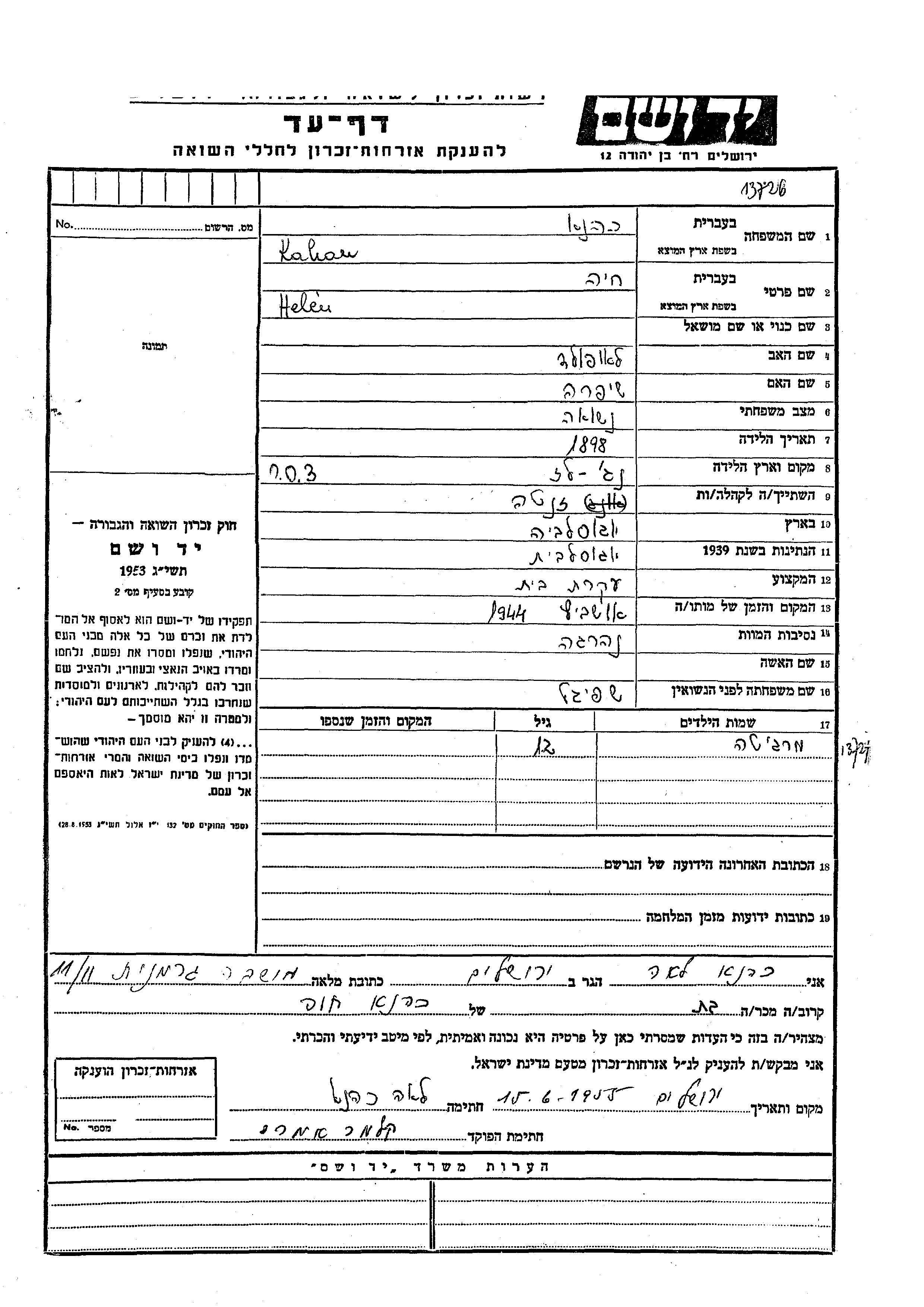 Yad Vashem - Colección conmemorativa de Hojas de Testimonio