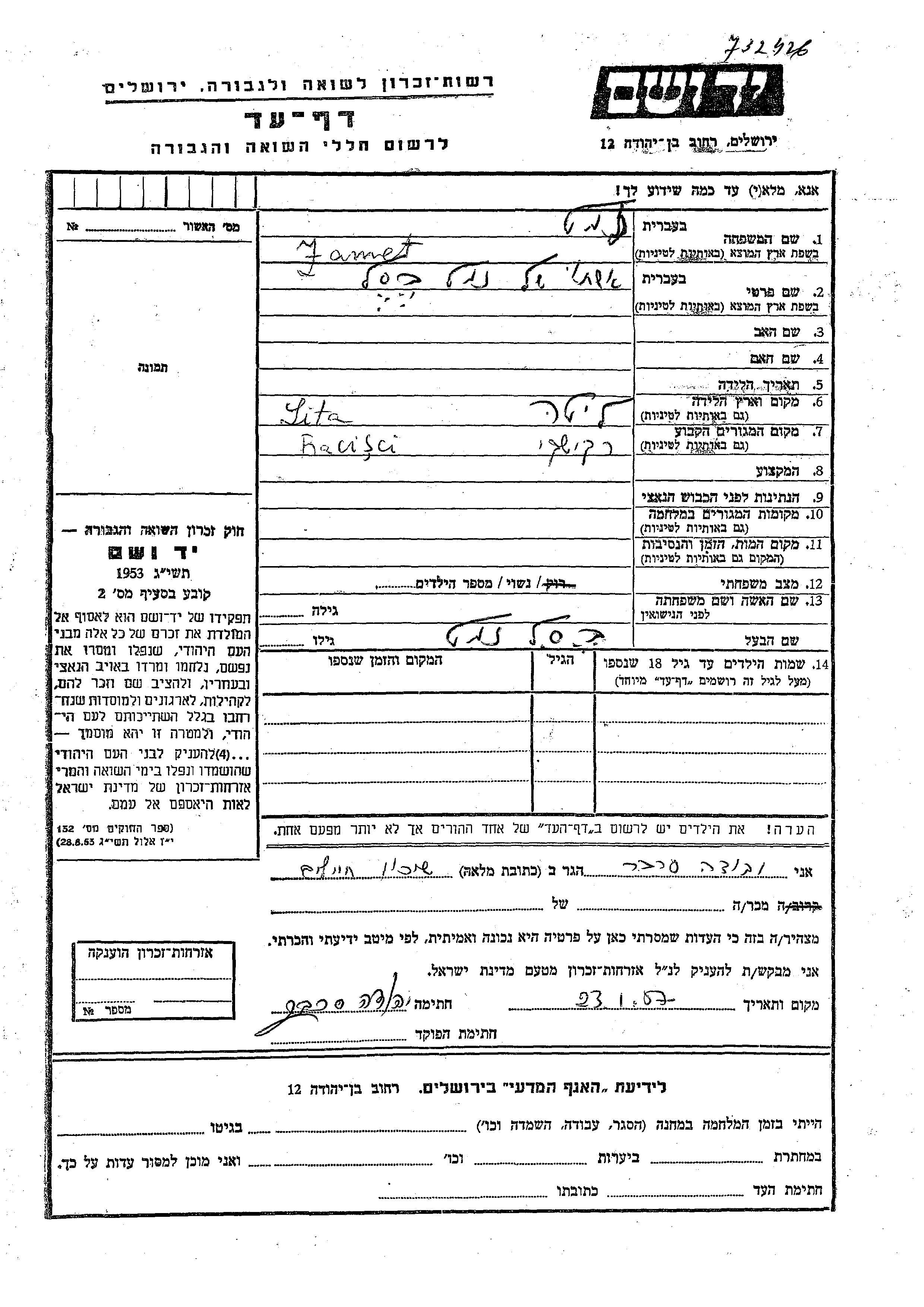 Zamet nombre desconocido Rakishki, Lituania Hoja de Testimonio