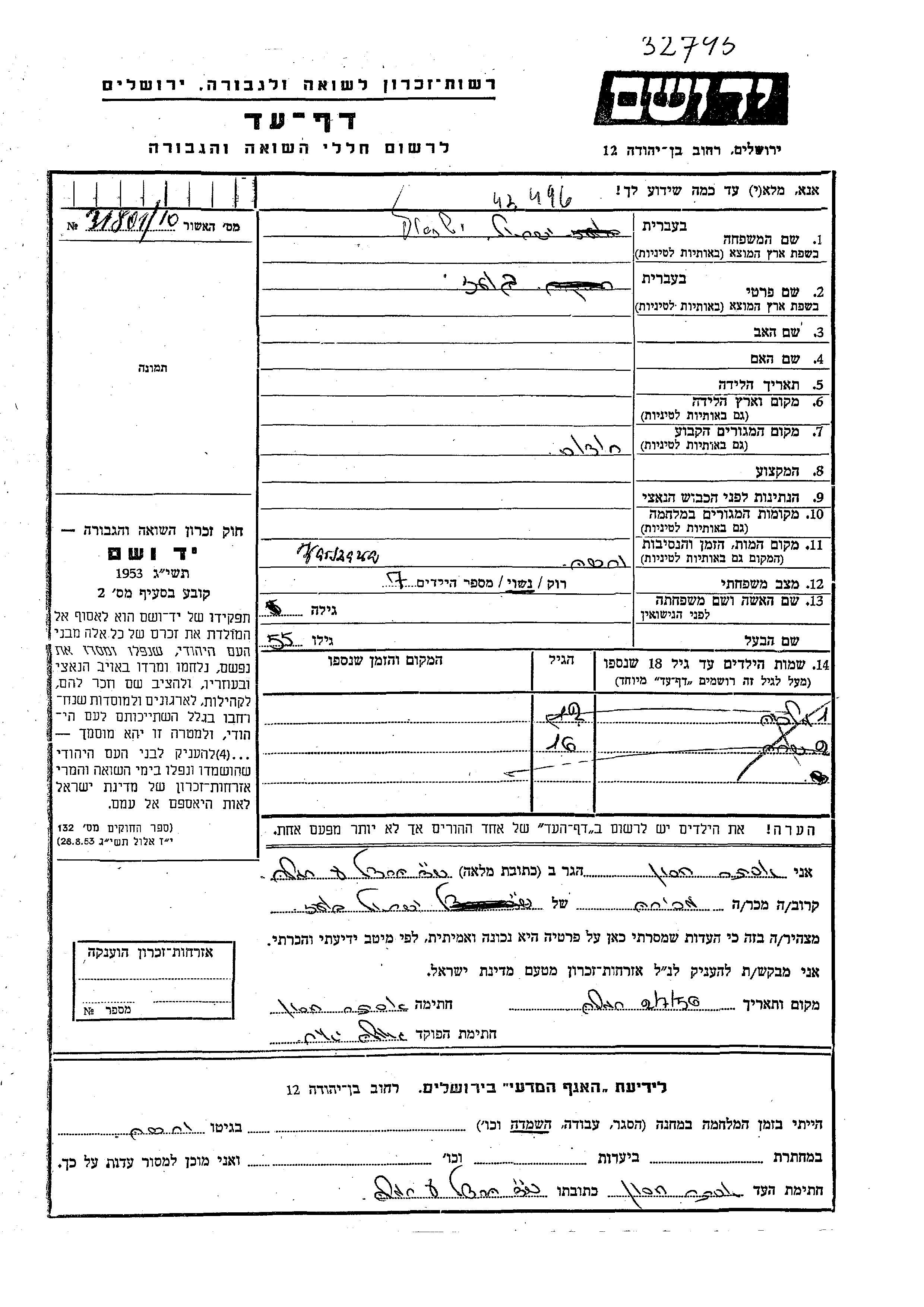 Yad Vashem - Colección conmemorativa de Hojas de Testimonio