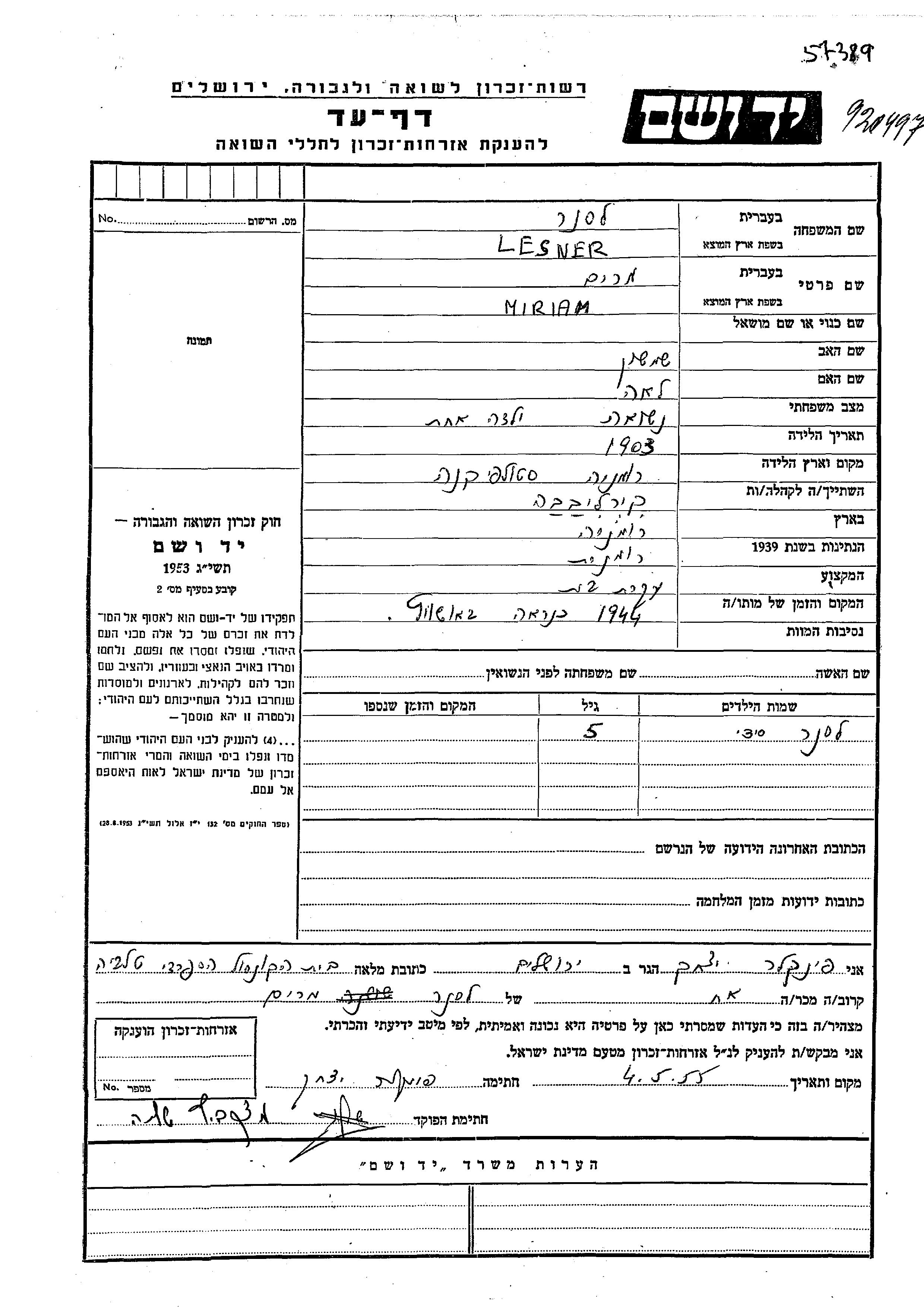 Yad Vashem - Colección conmemorativa de Hojas de Testimonio