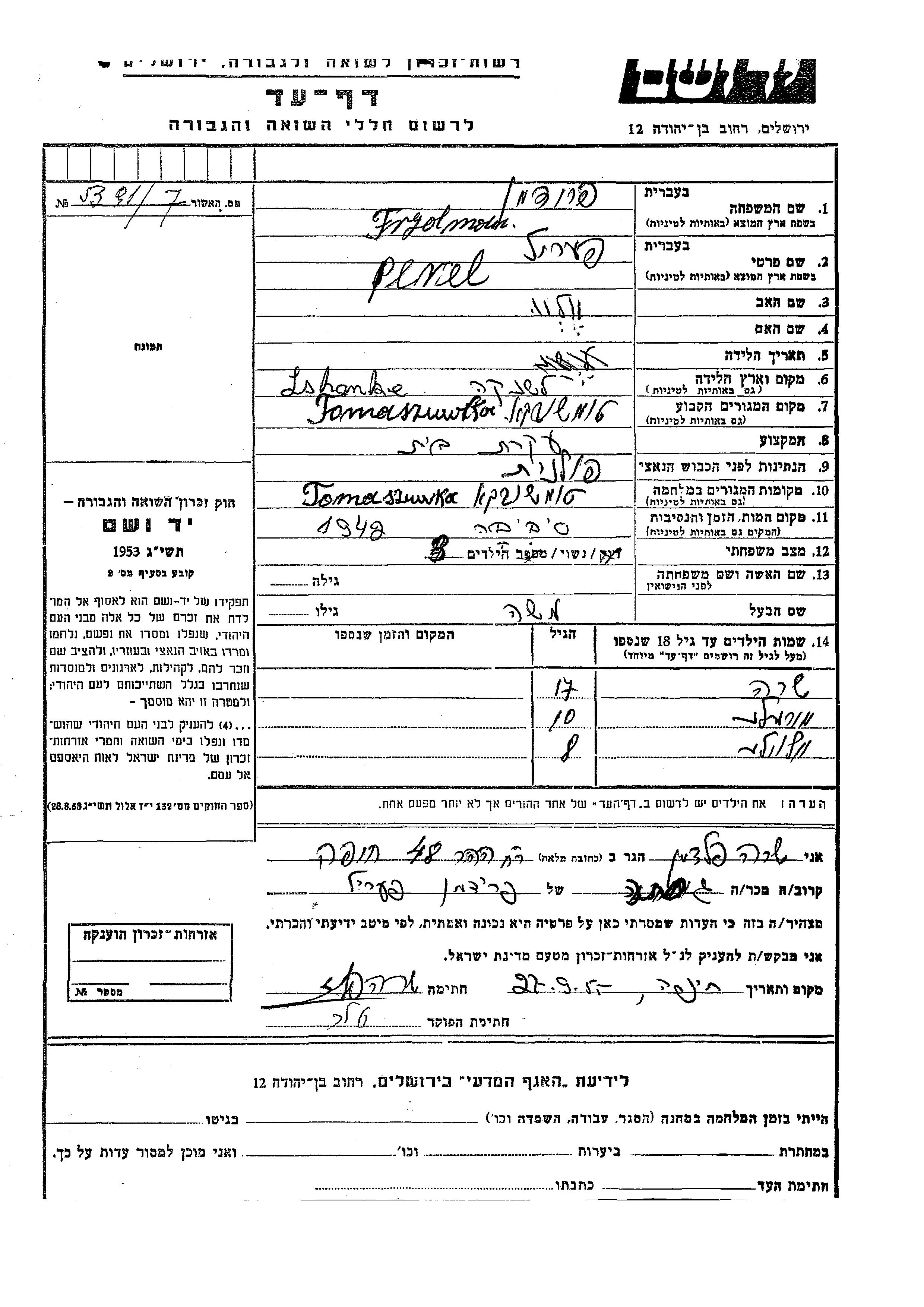 Yad Vashem - Colección conmemorativa de Hojas de Testimonio