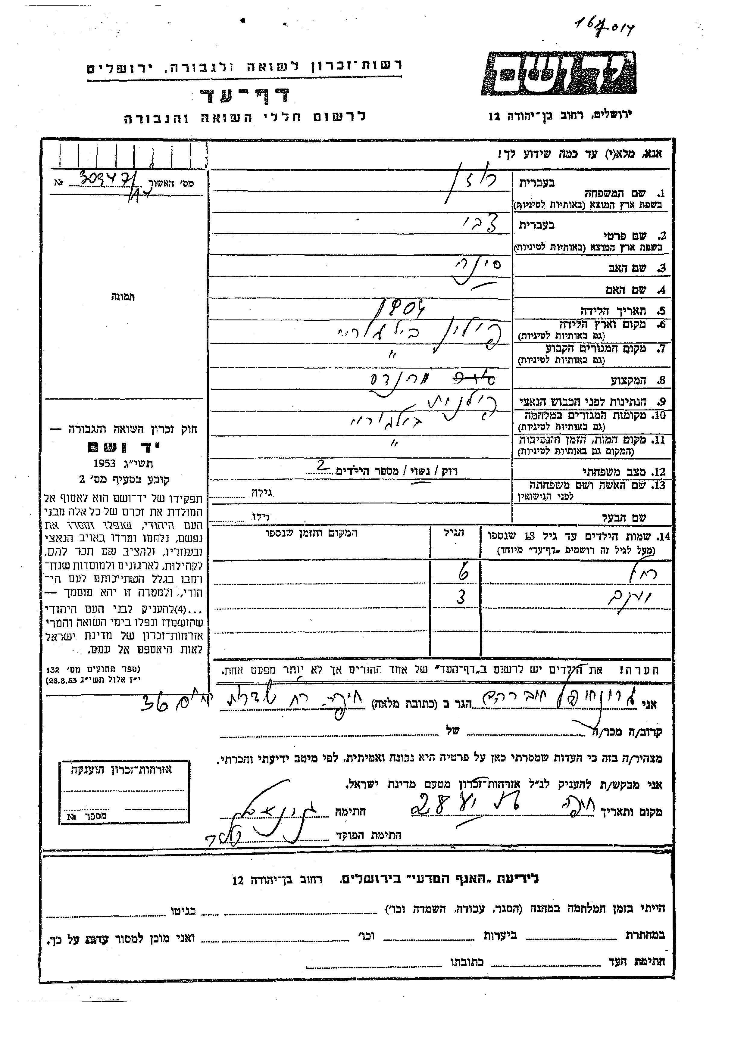 Yad Vashem - Colección conmemorativa de Hojas de Testimonio