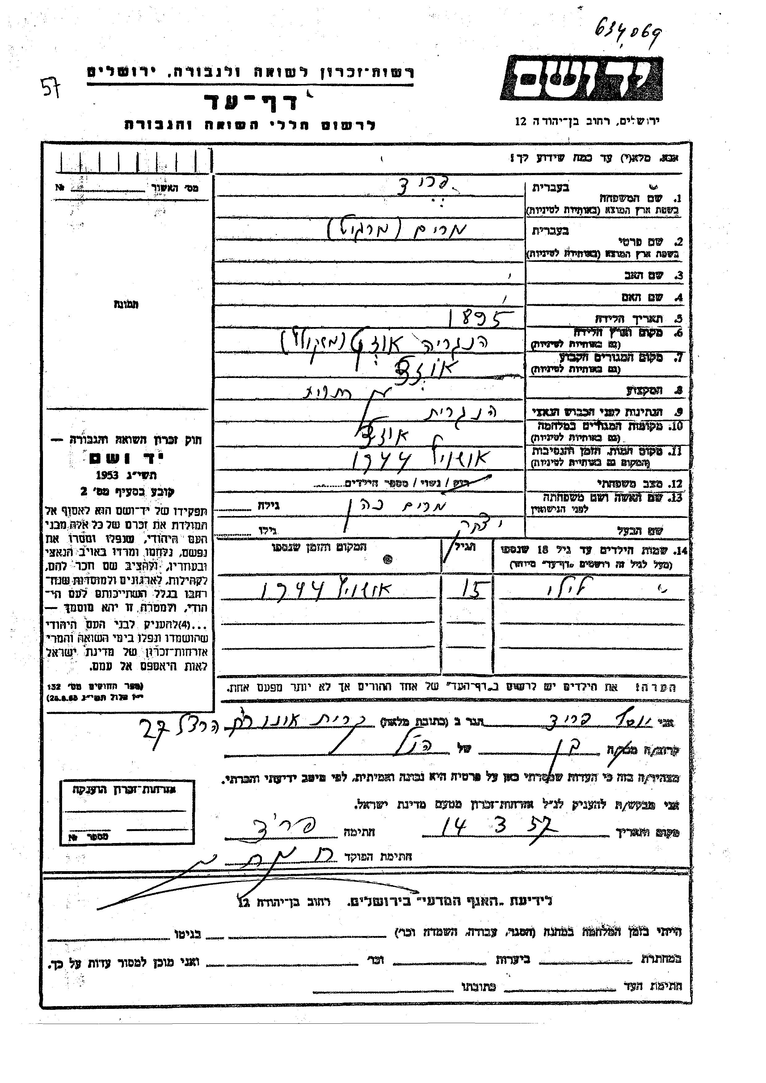 Yad Vashem - Colección conmemorativa de Hojas de Testimonio