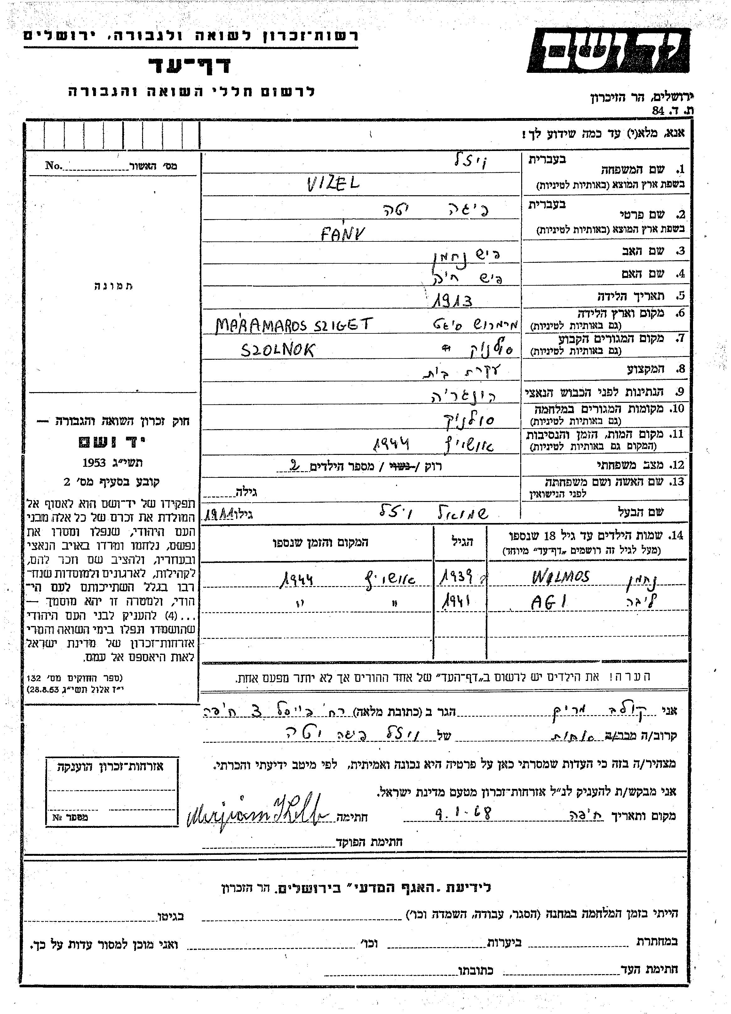 Vizel Wilmos Nakhman Szolnok, Hungría Hoja de Testimonio