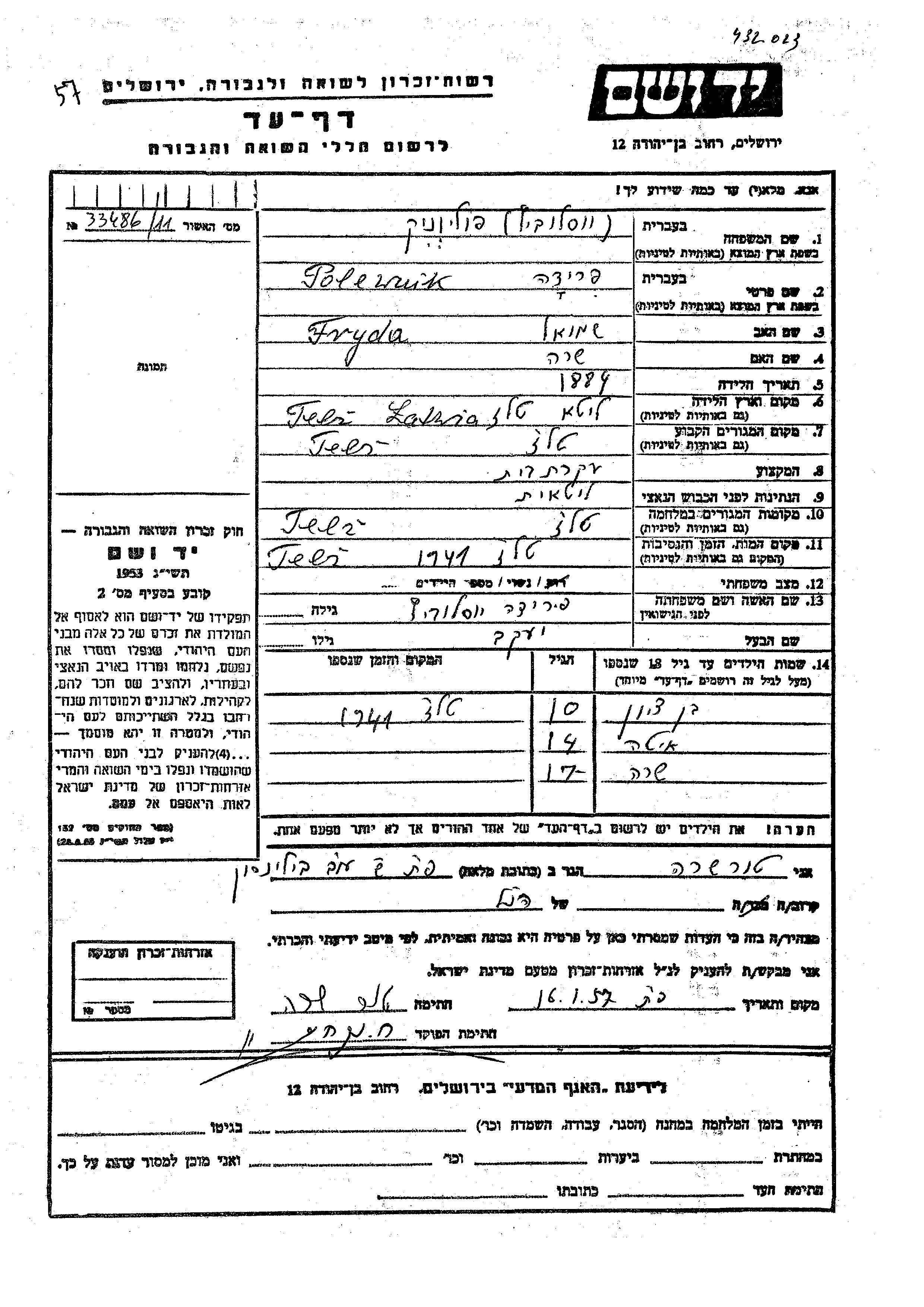 Polewnik Sara Telz, Lituania Hoja de Testimonio