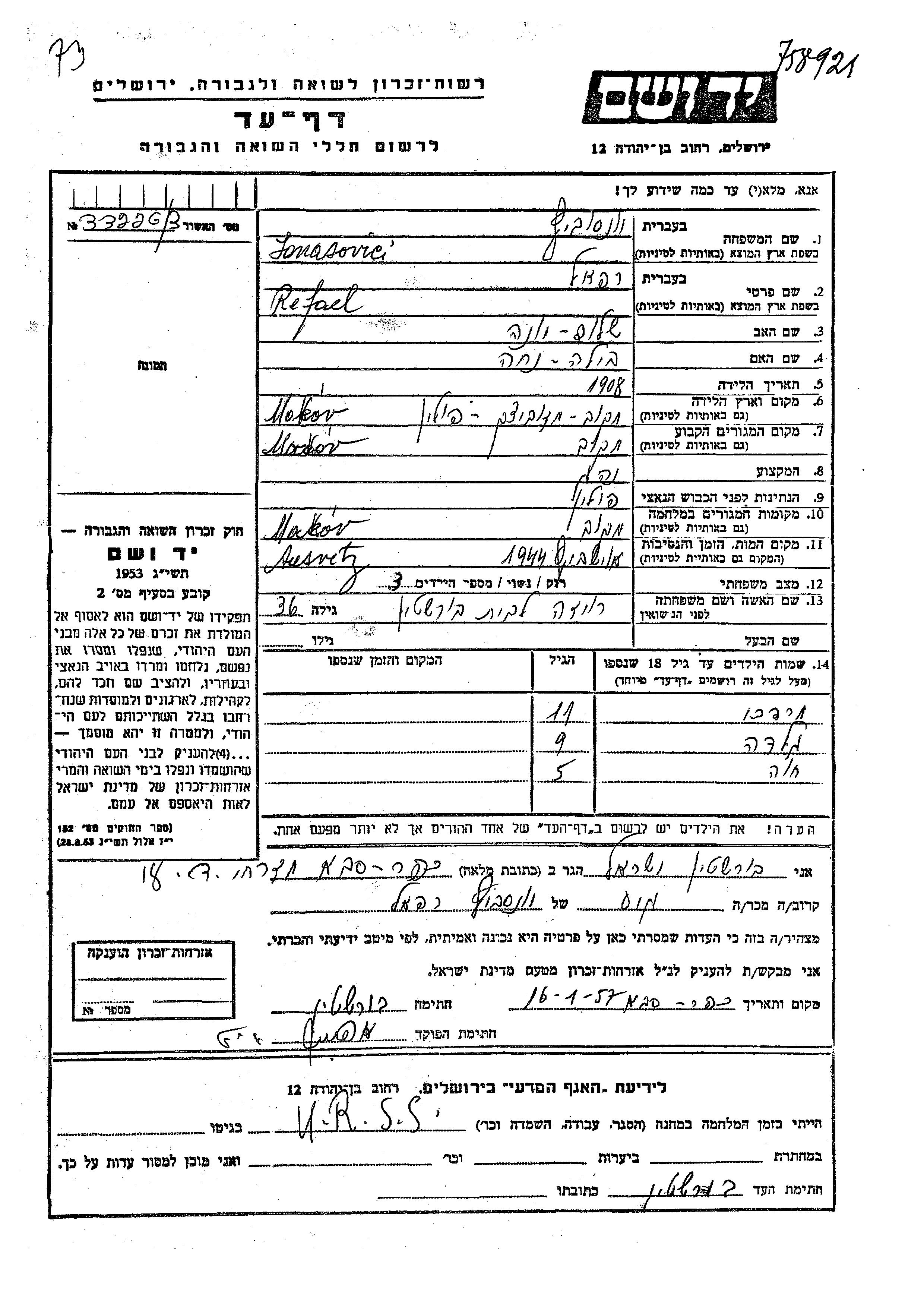 Yad Vashem - Colección conmemorativa de Hojas de Testimonio