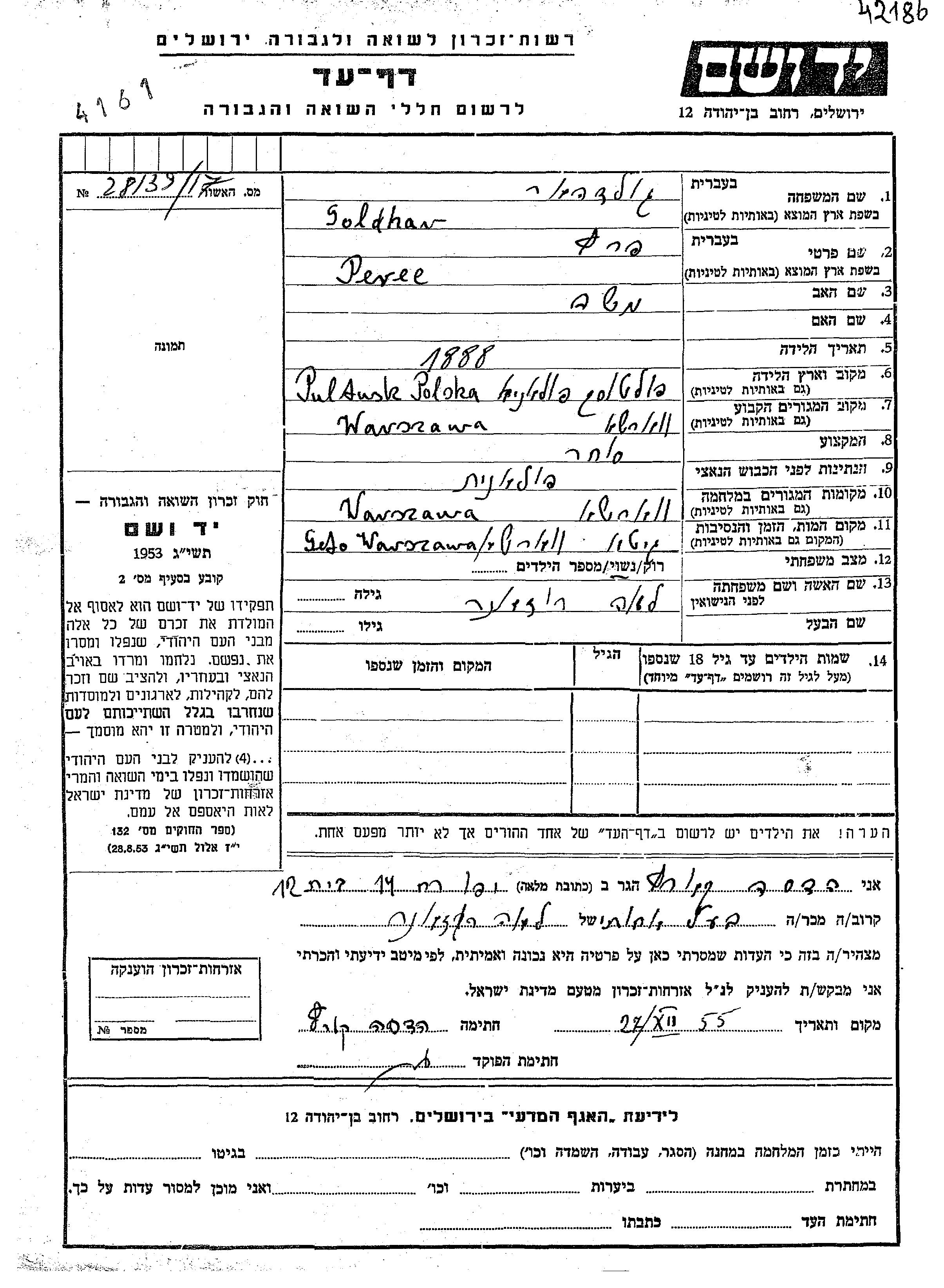 Goldhar Perec 1888 Warszawa, Polonia Hoja de Testimonio