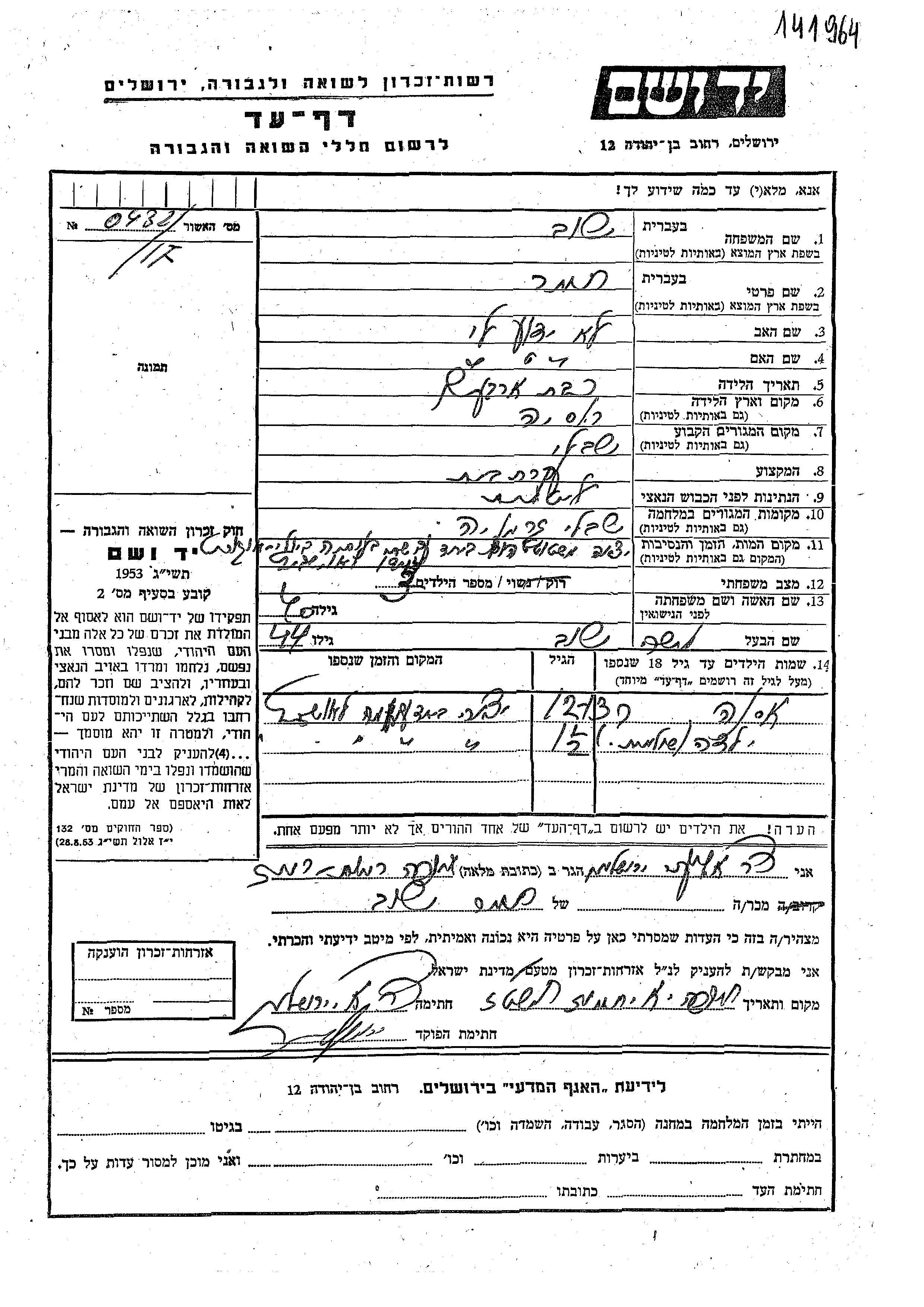 Yad Vashem - Colección conmemorativa de Hojas de Testimonio