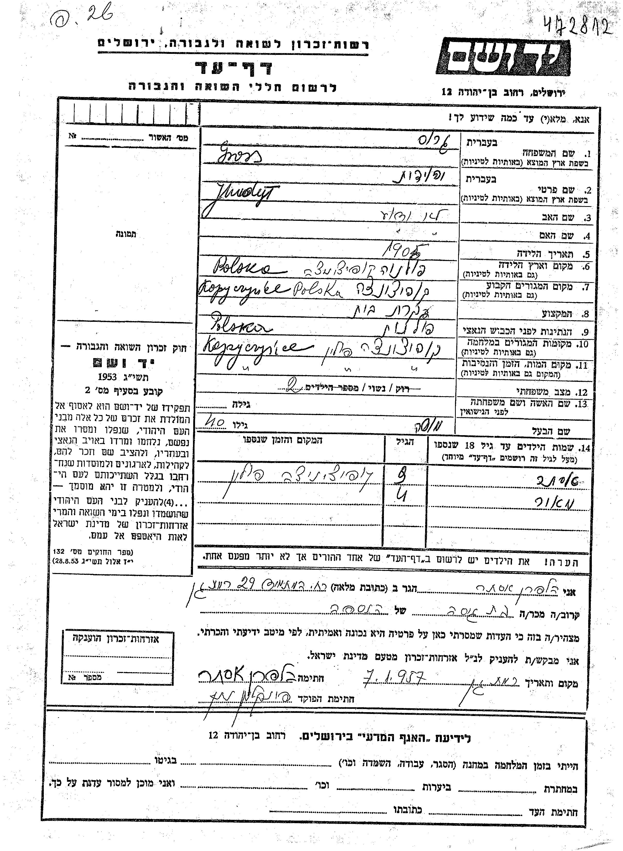 Yad Vashem - Colección conmemorativa de Hojas de Testimonio