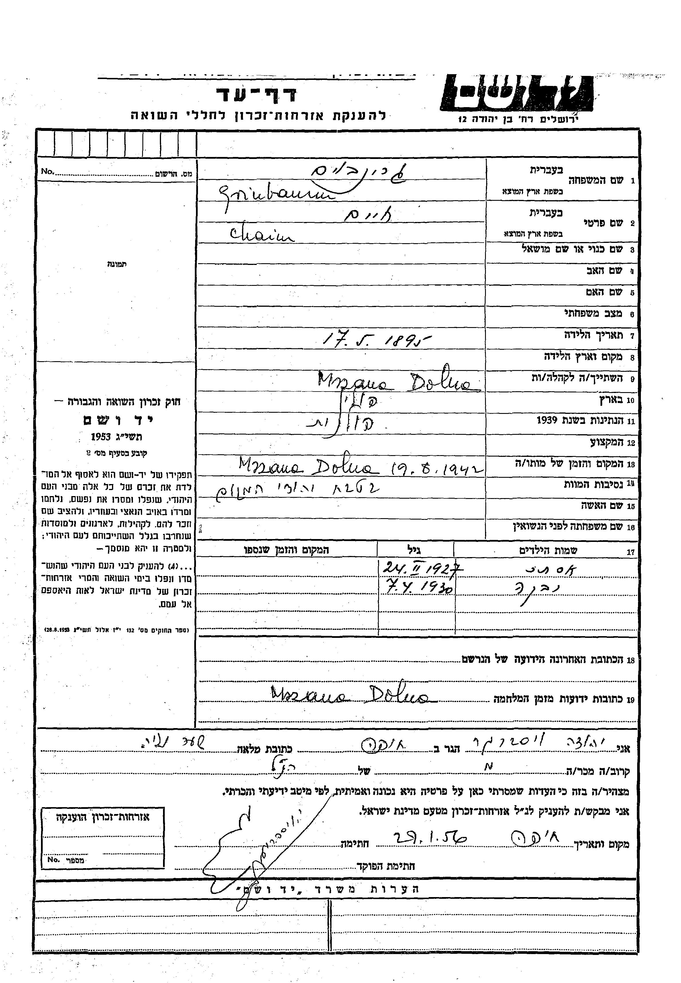 Yad Vashem - Colección conmemorativa de Hojas de Testimonio