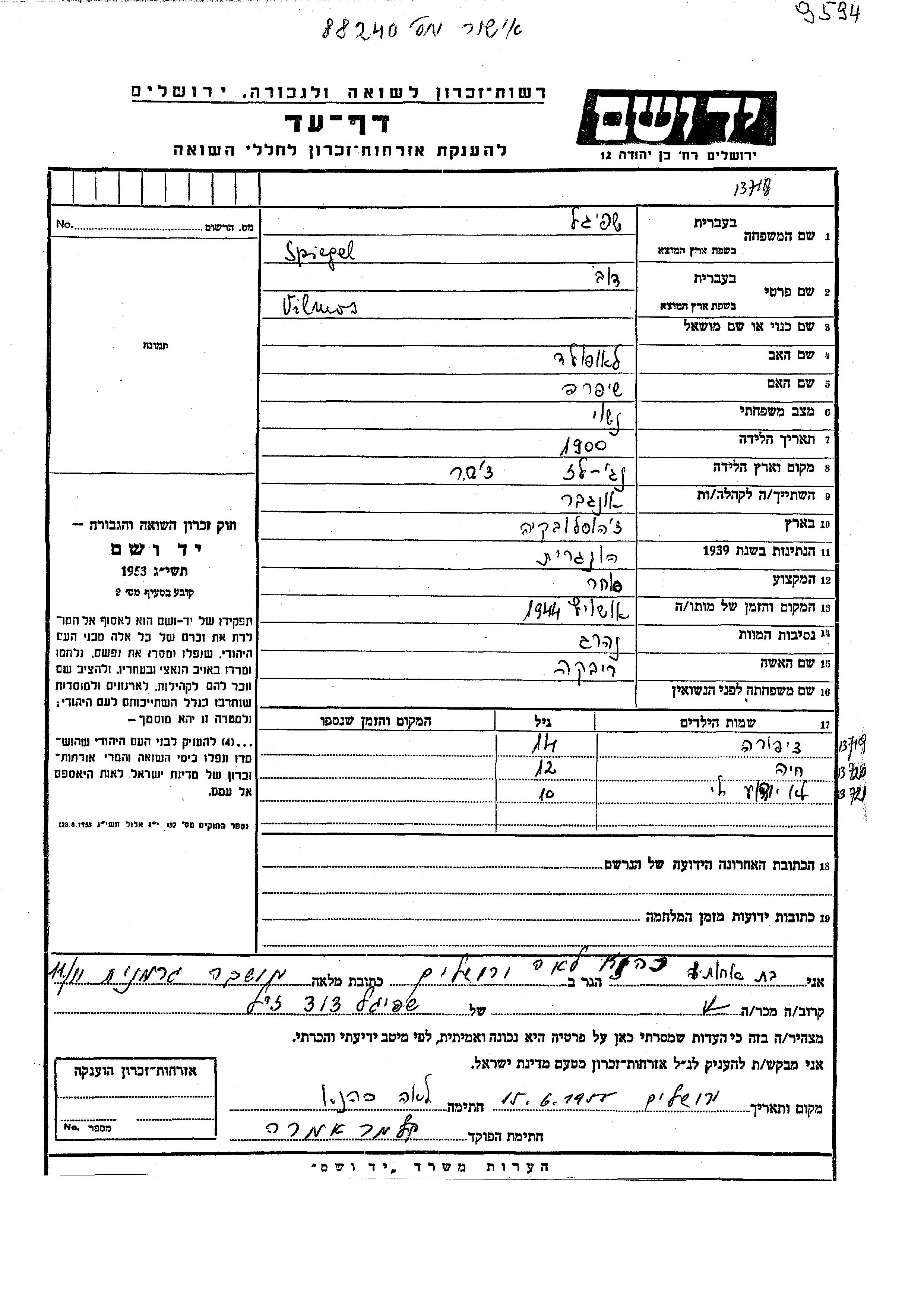 Spiegel nombre desconocido Uzhorod, Checoslovaquia Hoja de Testimonio