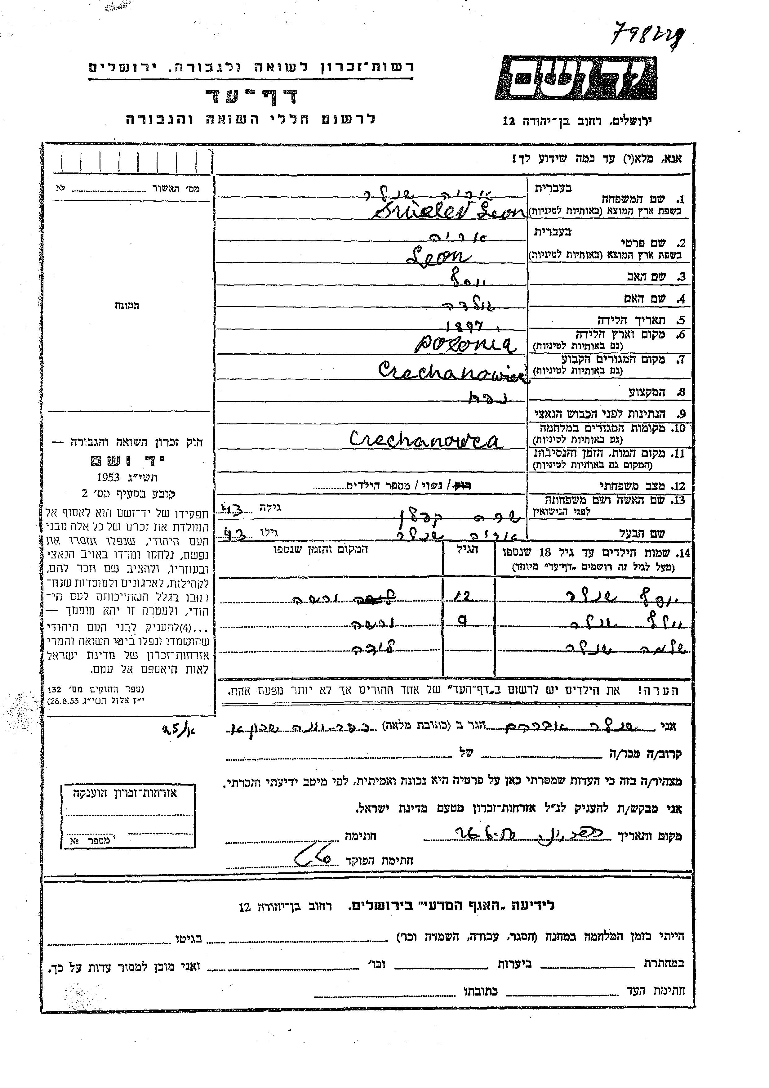 Szneller Volf Czechanowiec, Polonia Hoja de Testimonio