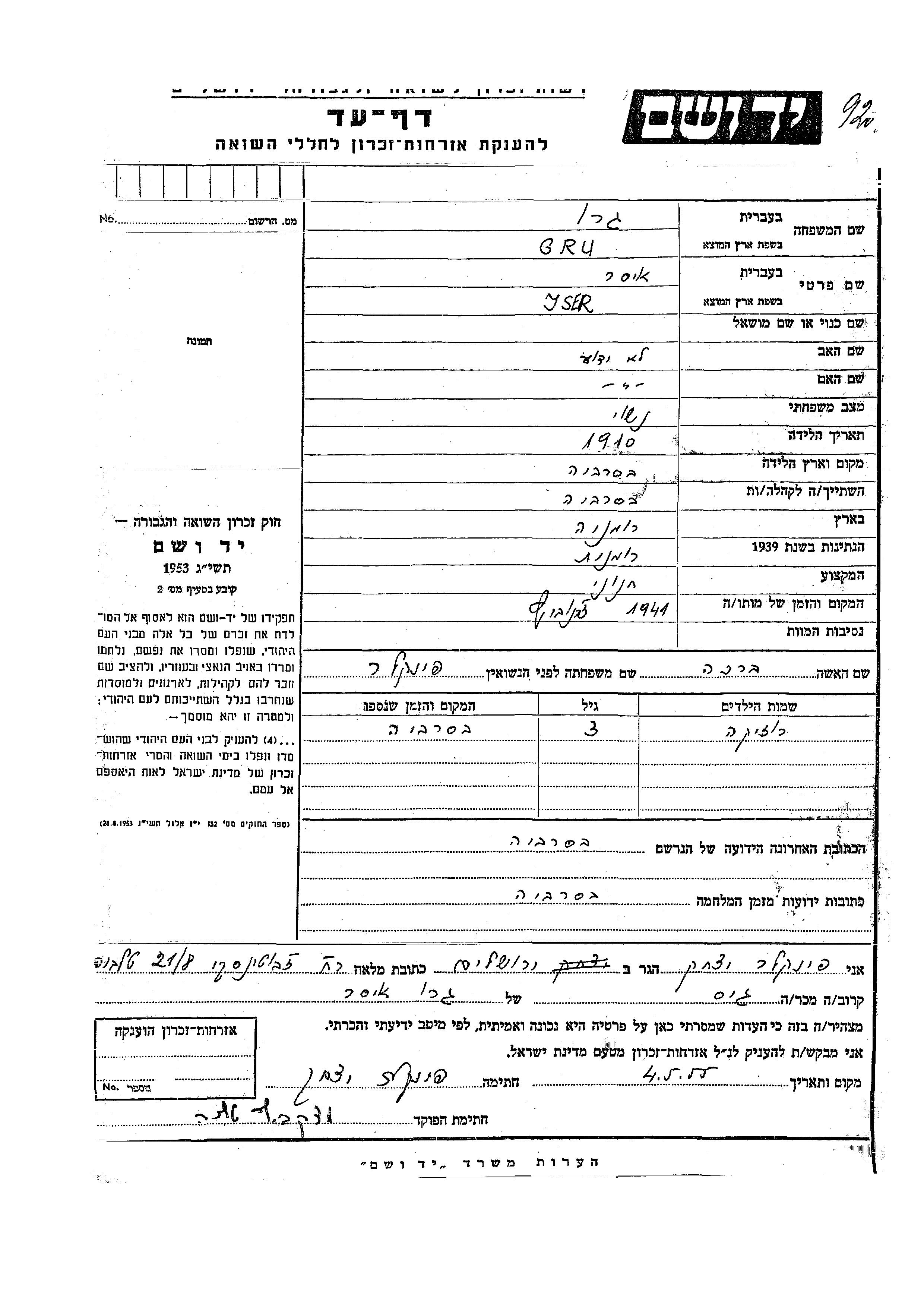 Yad Vashem - Colección conmemorativa de Hojas de Testimonio