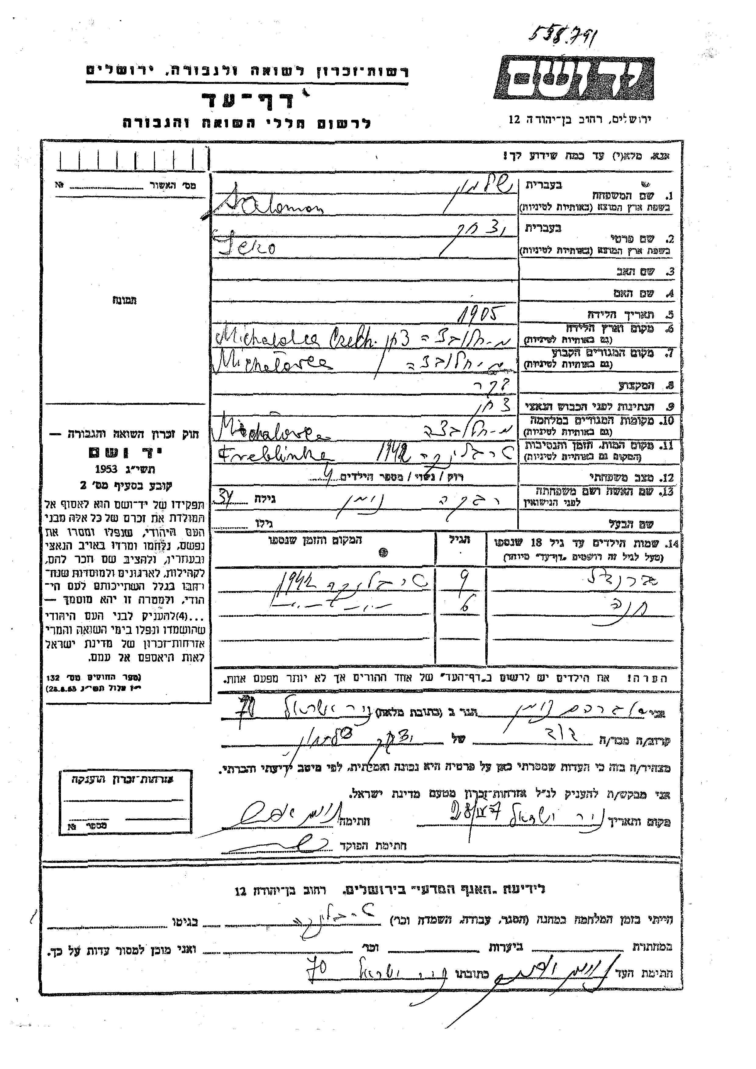 Salomon Shalamon Brandel Michalovce, Checoslovaquia Hoja de Testimonio