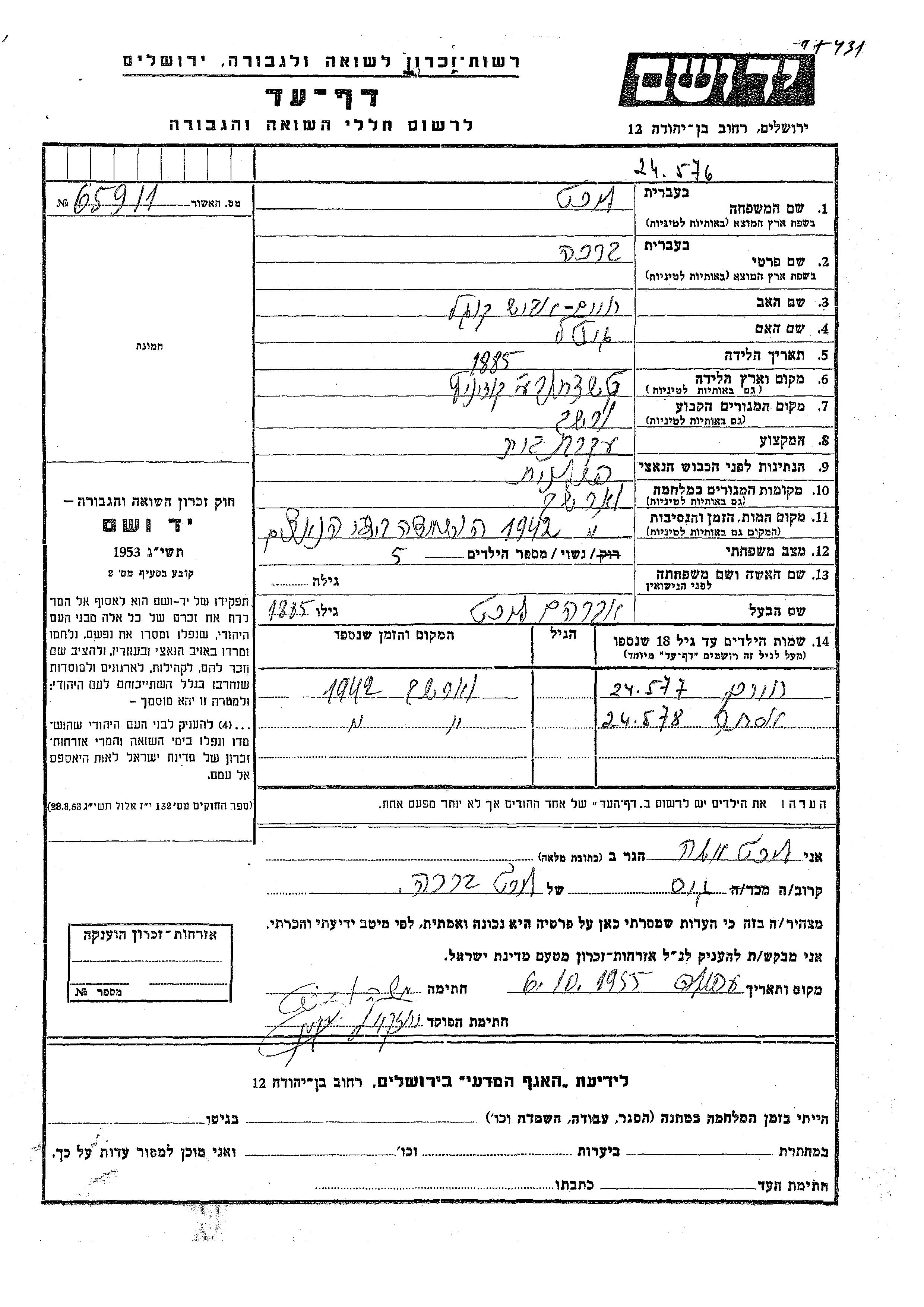 Likht Khaim Wieruszow, Polonia Hoja de Testimonio