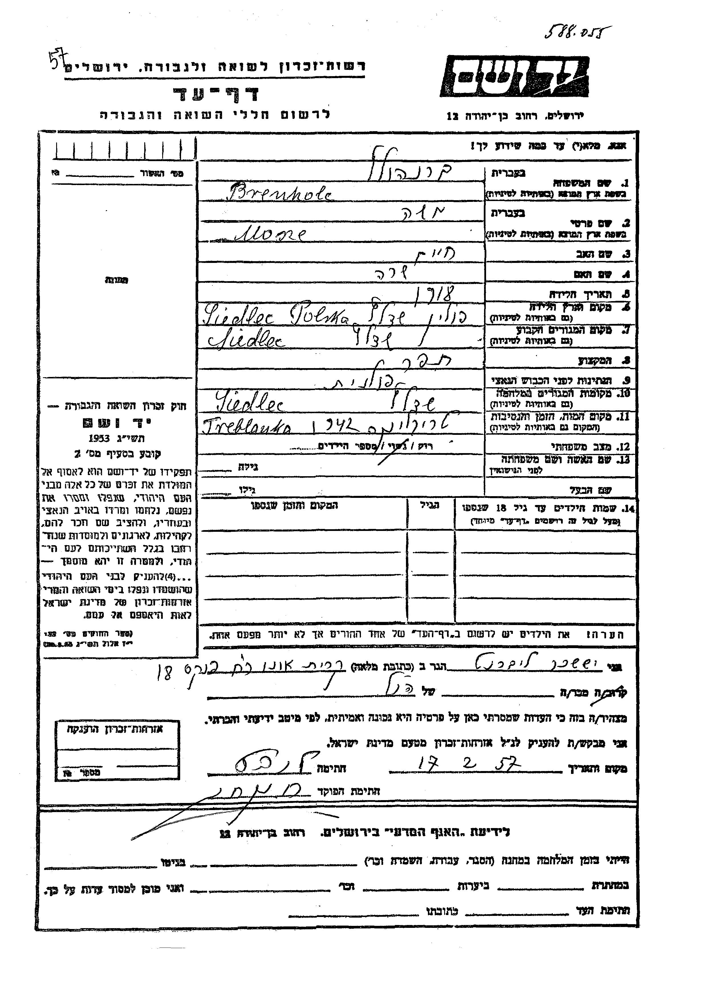 Yad Vashem - Colección conmemorativa de Hojas de Testimonio