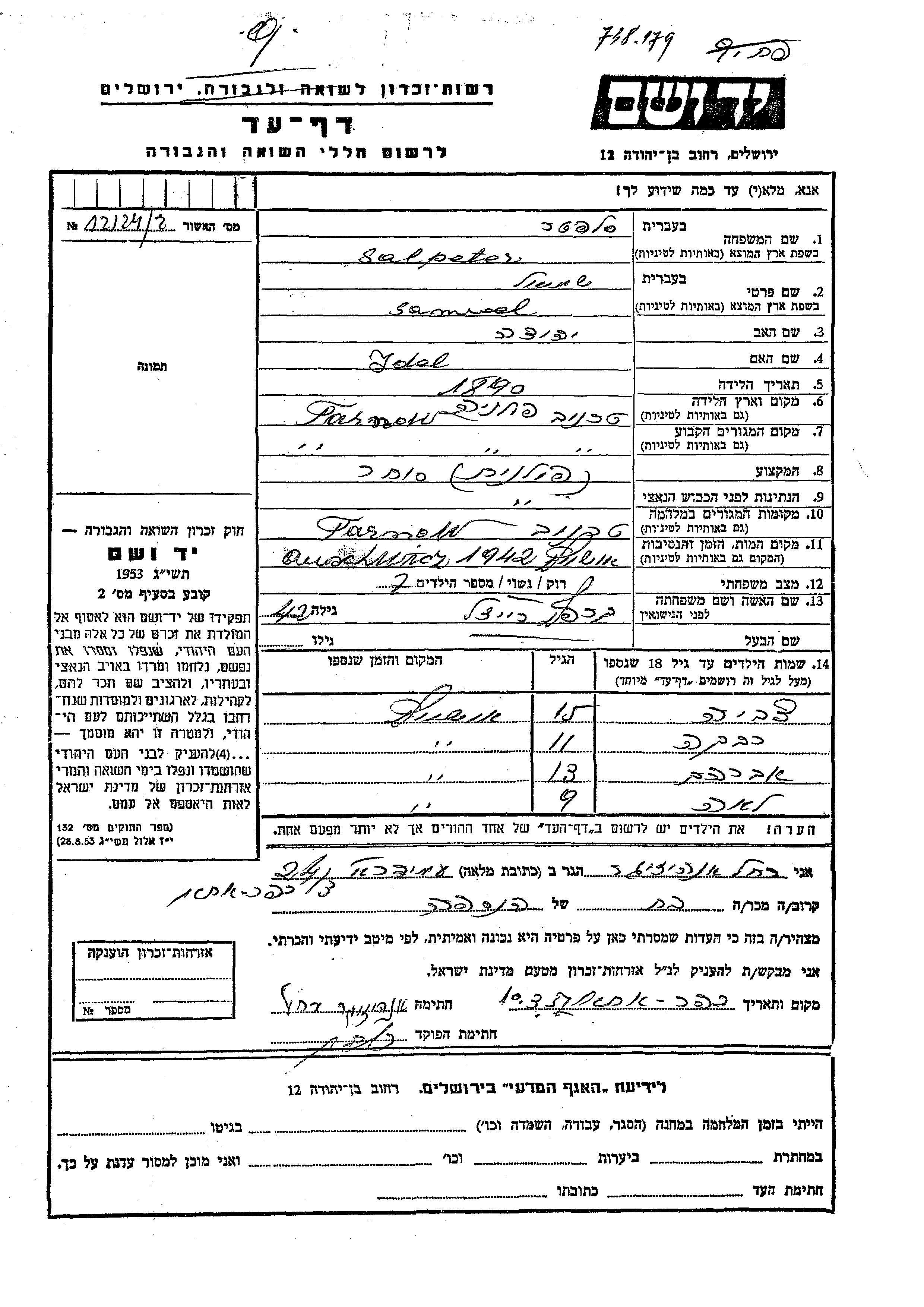 Salpeter Tzvia Tarnov, Polonia Hoja de Testimonio