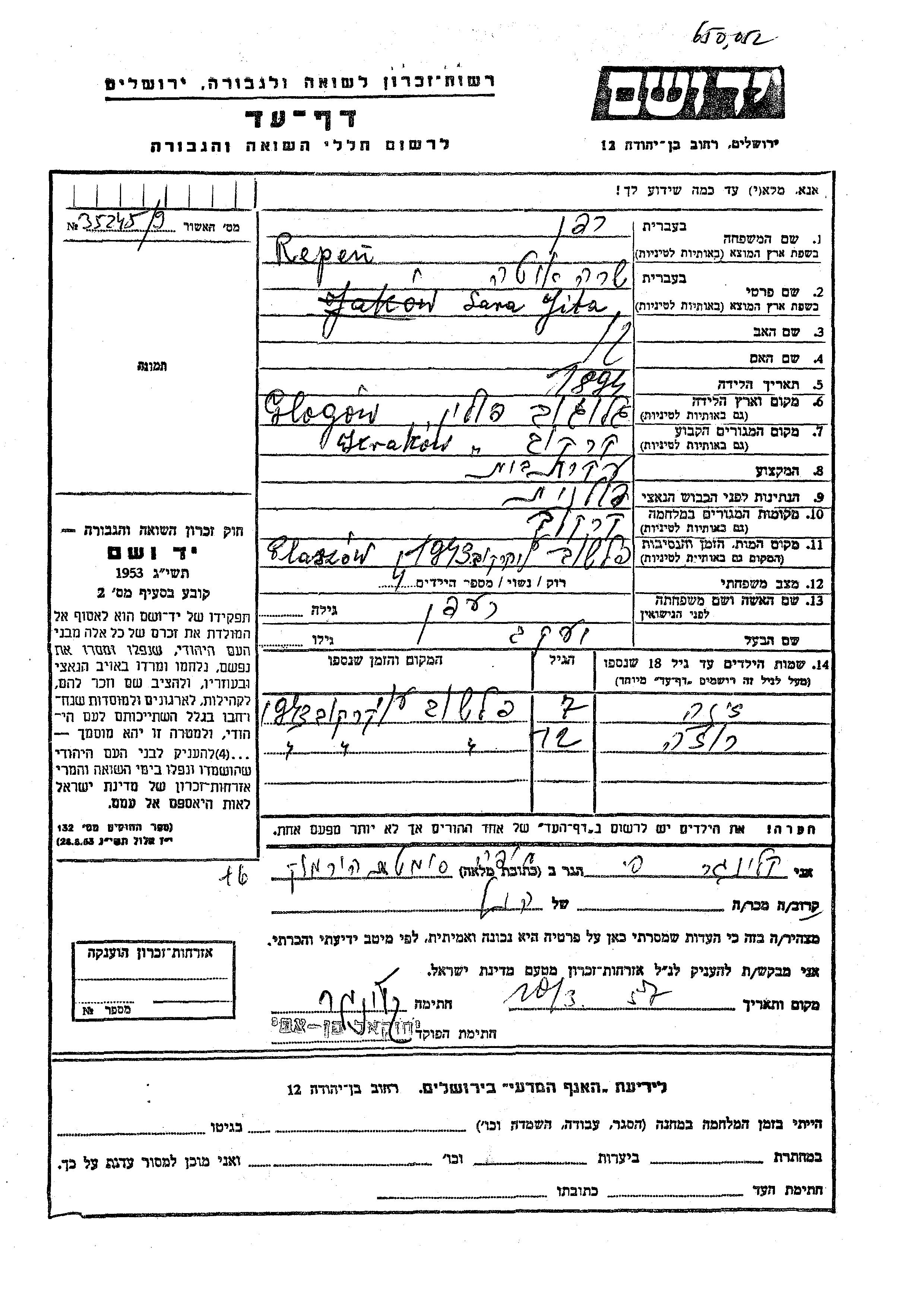 Repen Roza Krakow, Polonia Hoja de Testimonio