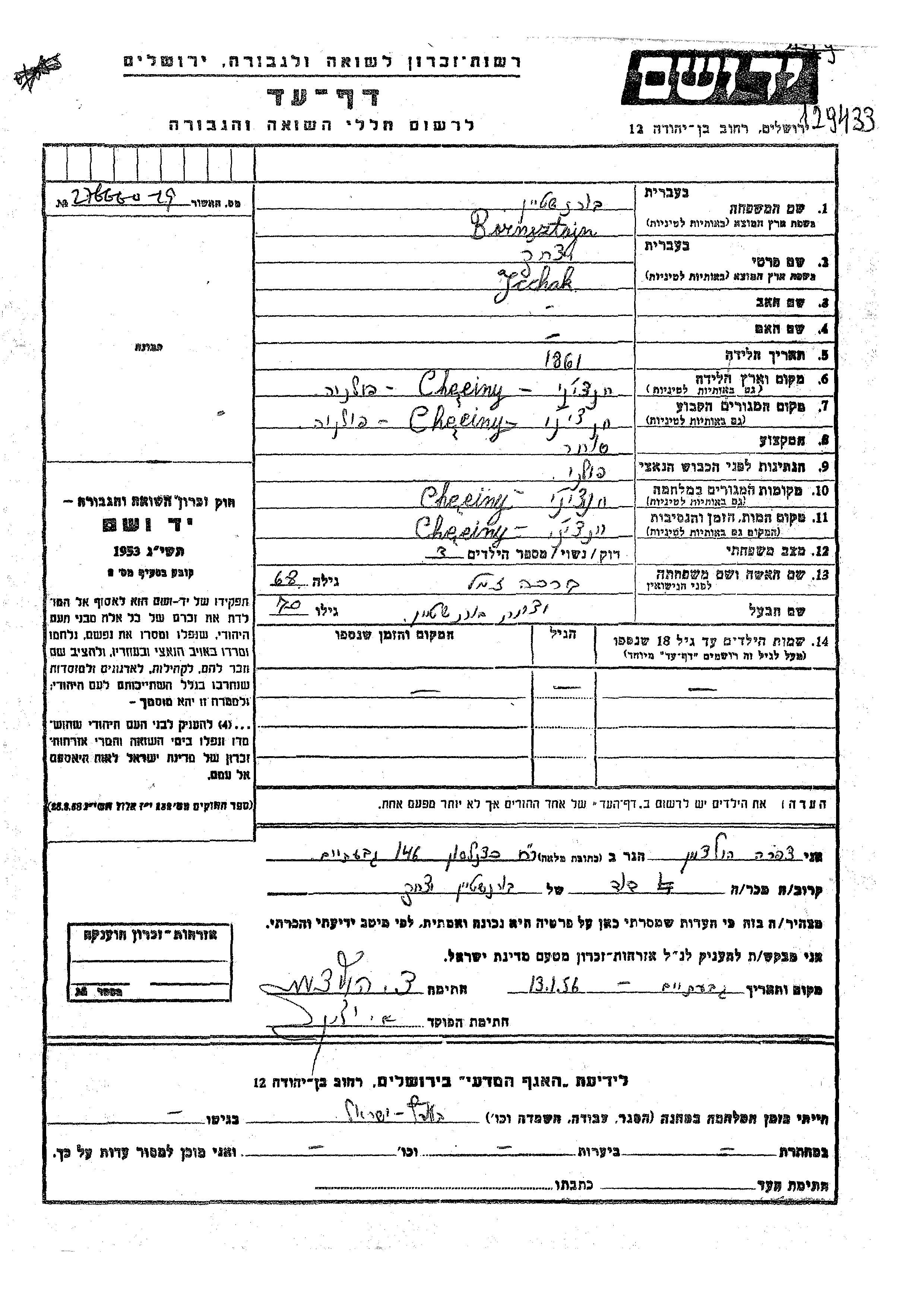 Bornsztajn Jcchak 1861 Chęciny, Polonia Hoja de Testimonio