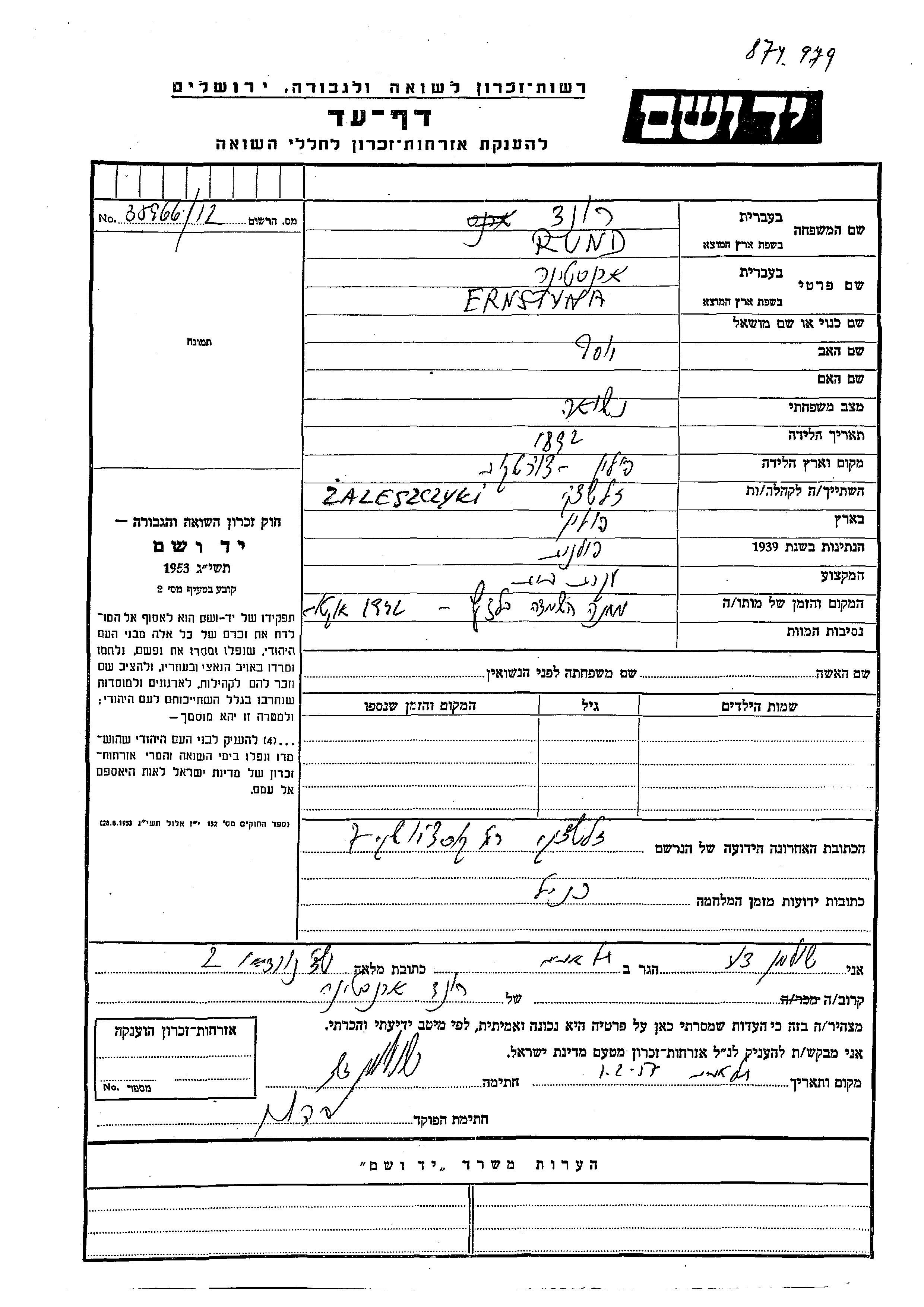 Yad Vashem - Colección conmemorativa de Hojas de Testimonio