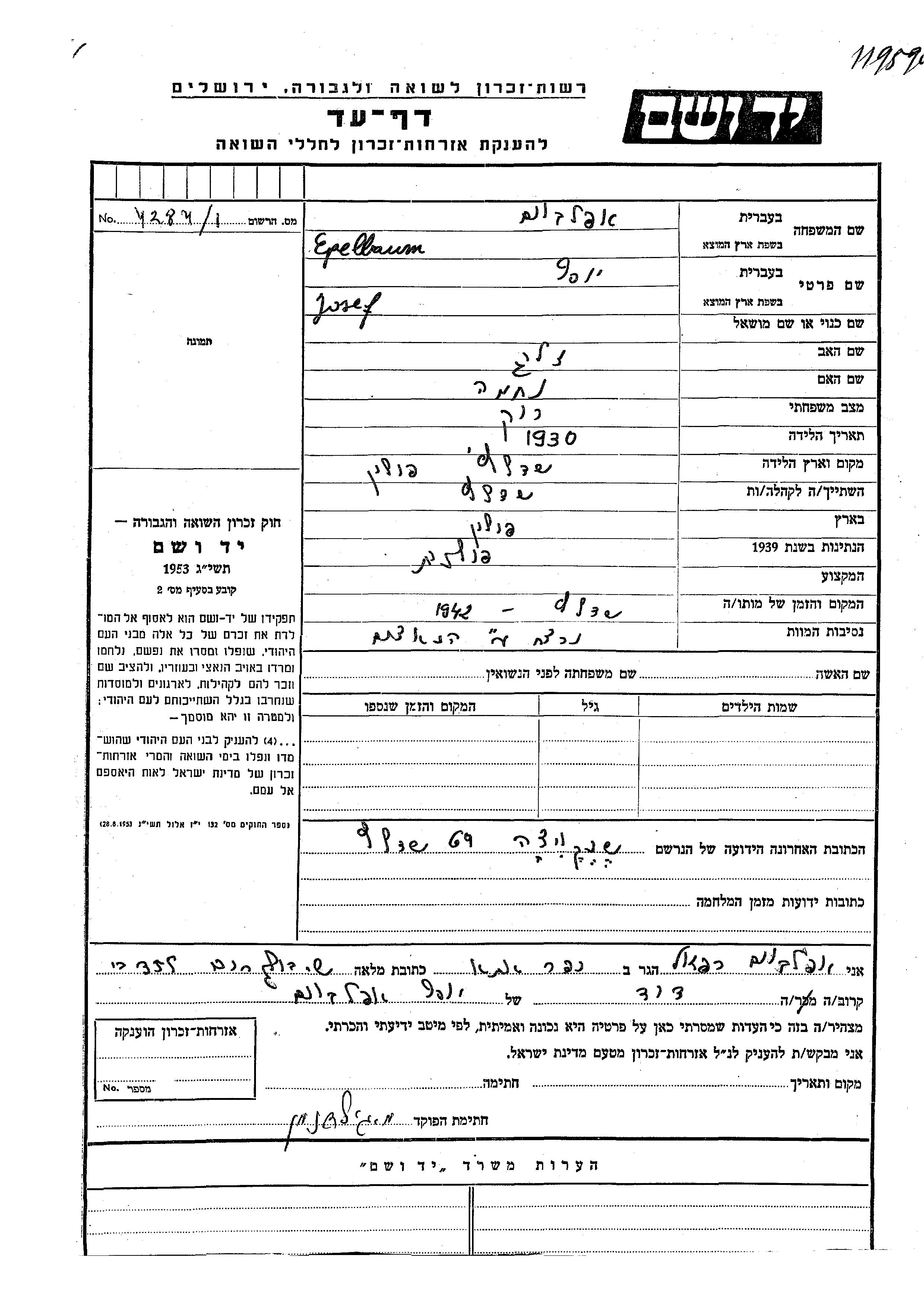 Epelbaum Josef 1930 Siedlce, Polonia Hoja de Testimonio