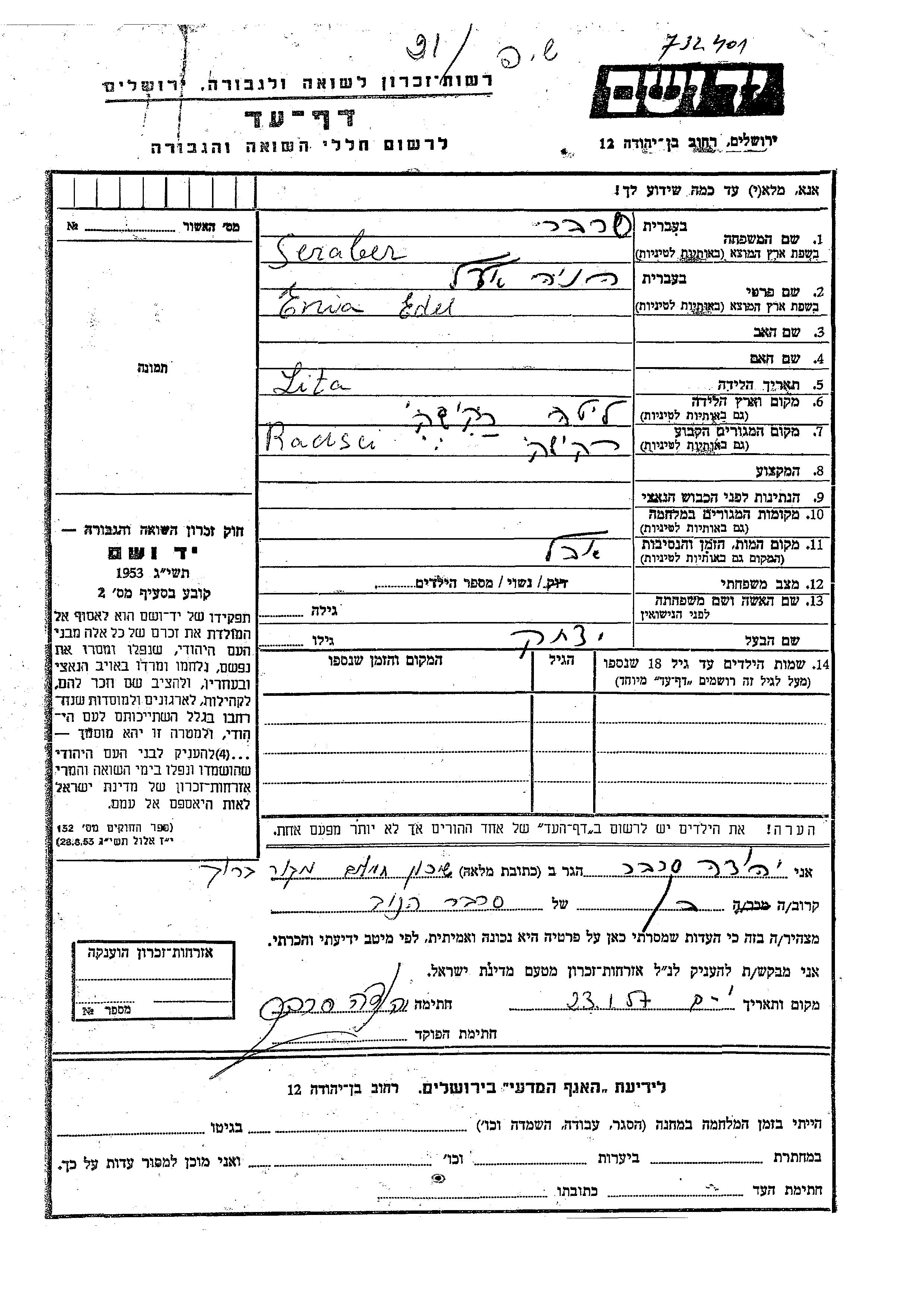 Seraber Enia Edel Henia Etel Rakishki, Lituania Hoja de Testimonio
