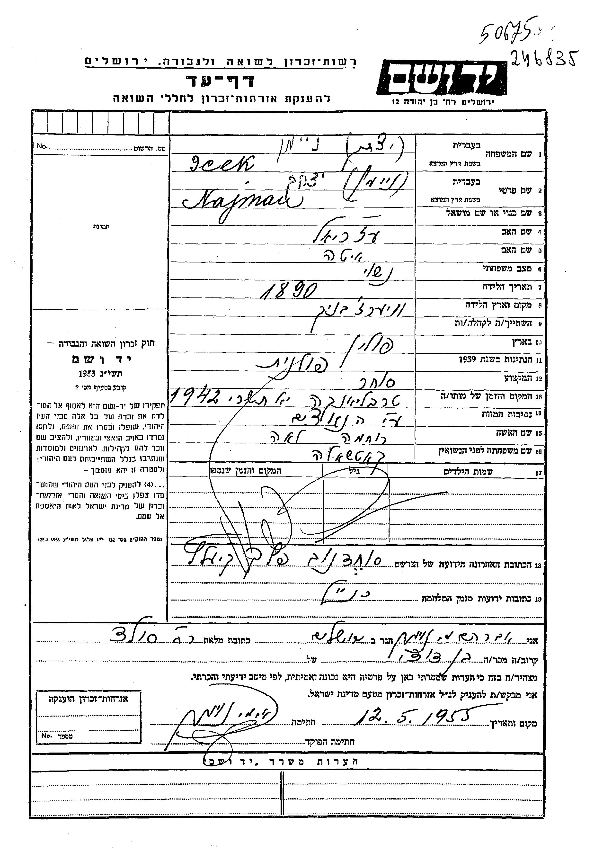 Najman Icek 1890 Suchedniow, Polonia Hoja de Testimonio