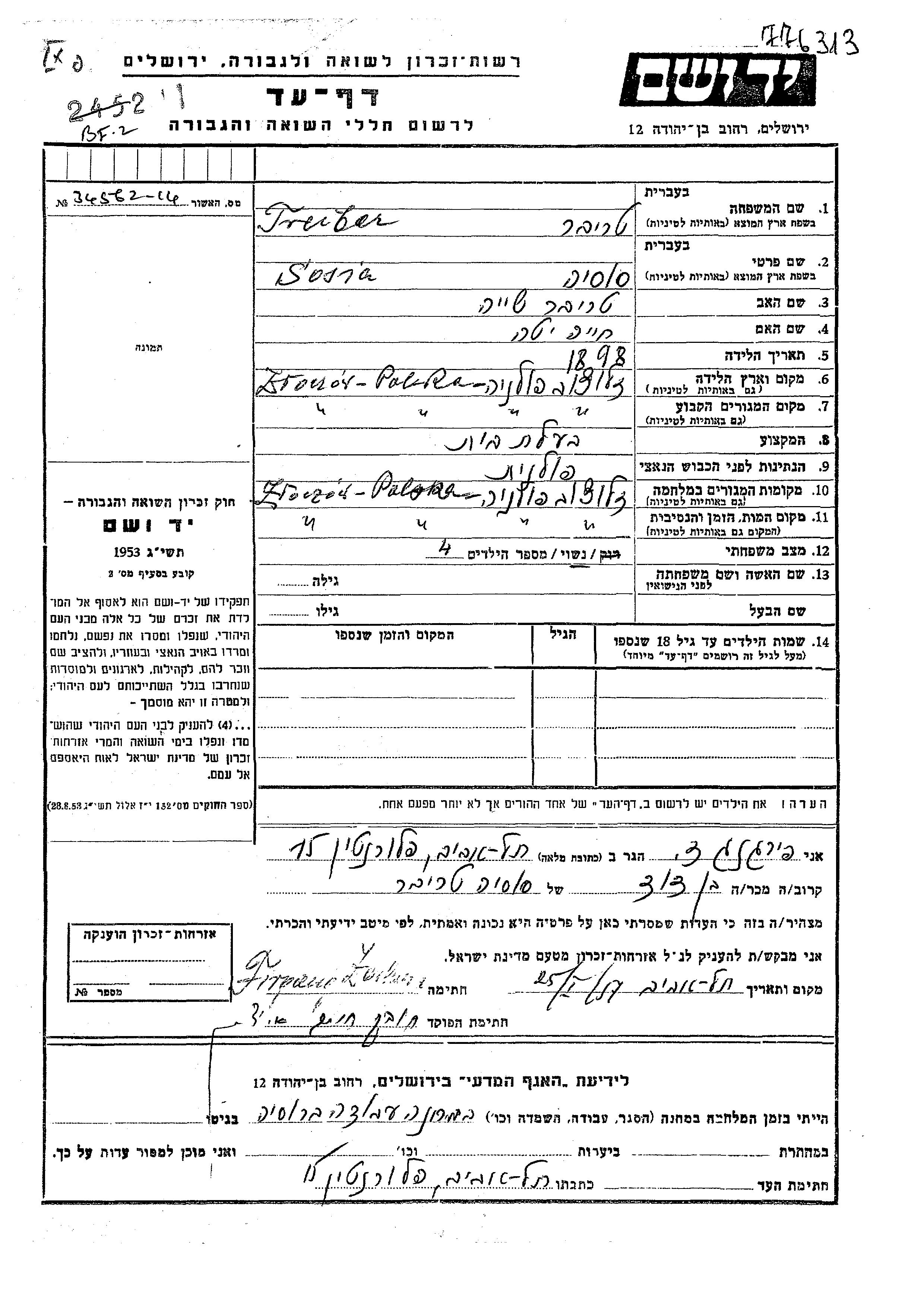 Yad Vashem - Colección conmemorativa de Hojas de Testimonio