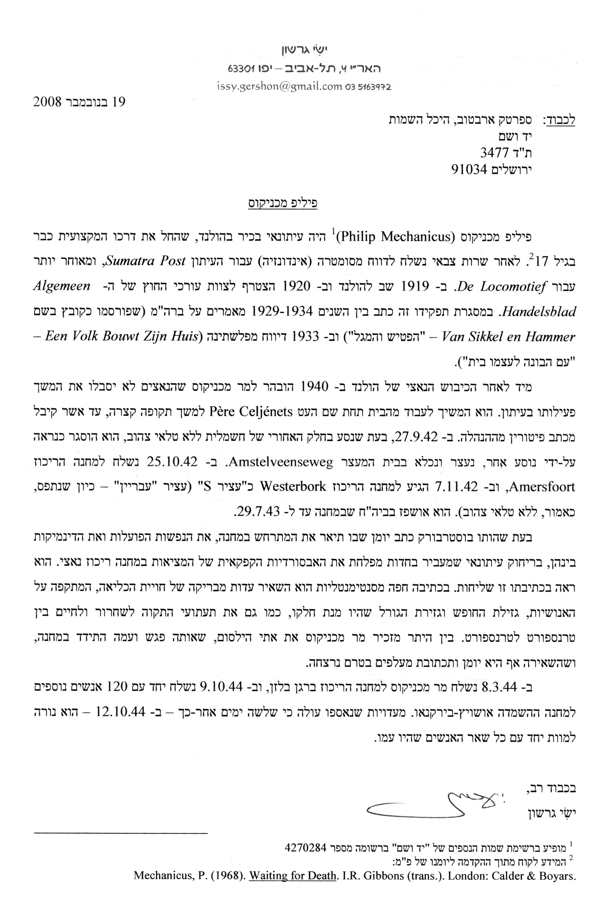 | Mechanicus | Philip | 1889 | Amsterdam, Holanda | lista de judíos de Holanda asesinados |