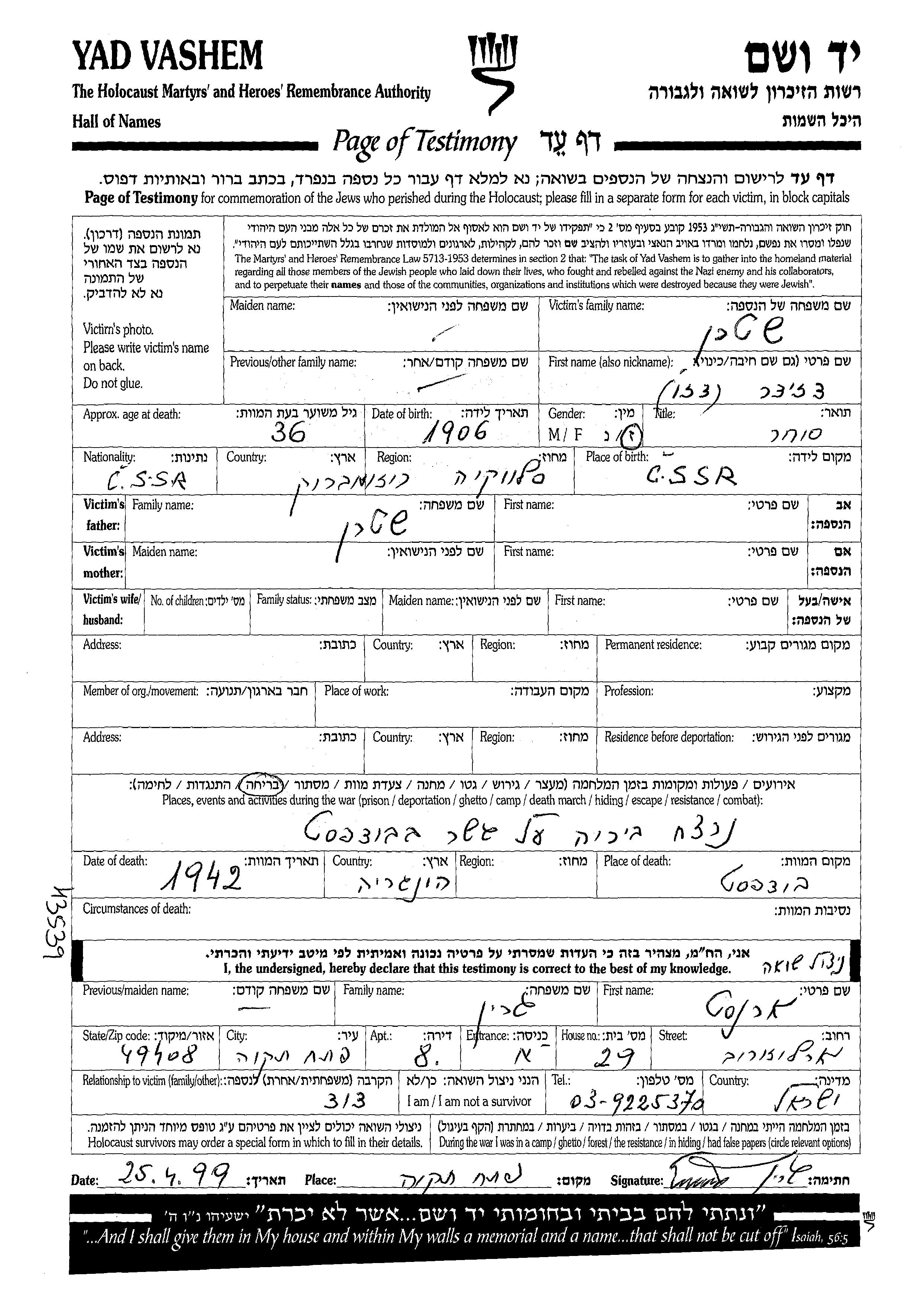 Durante la Guerra/Shoá: