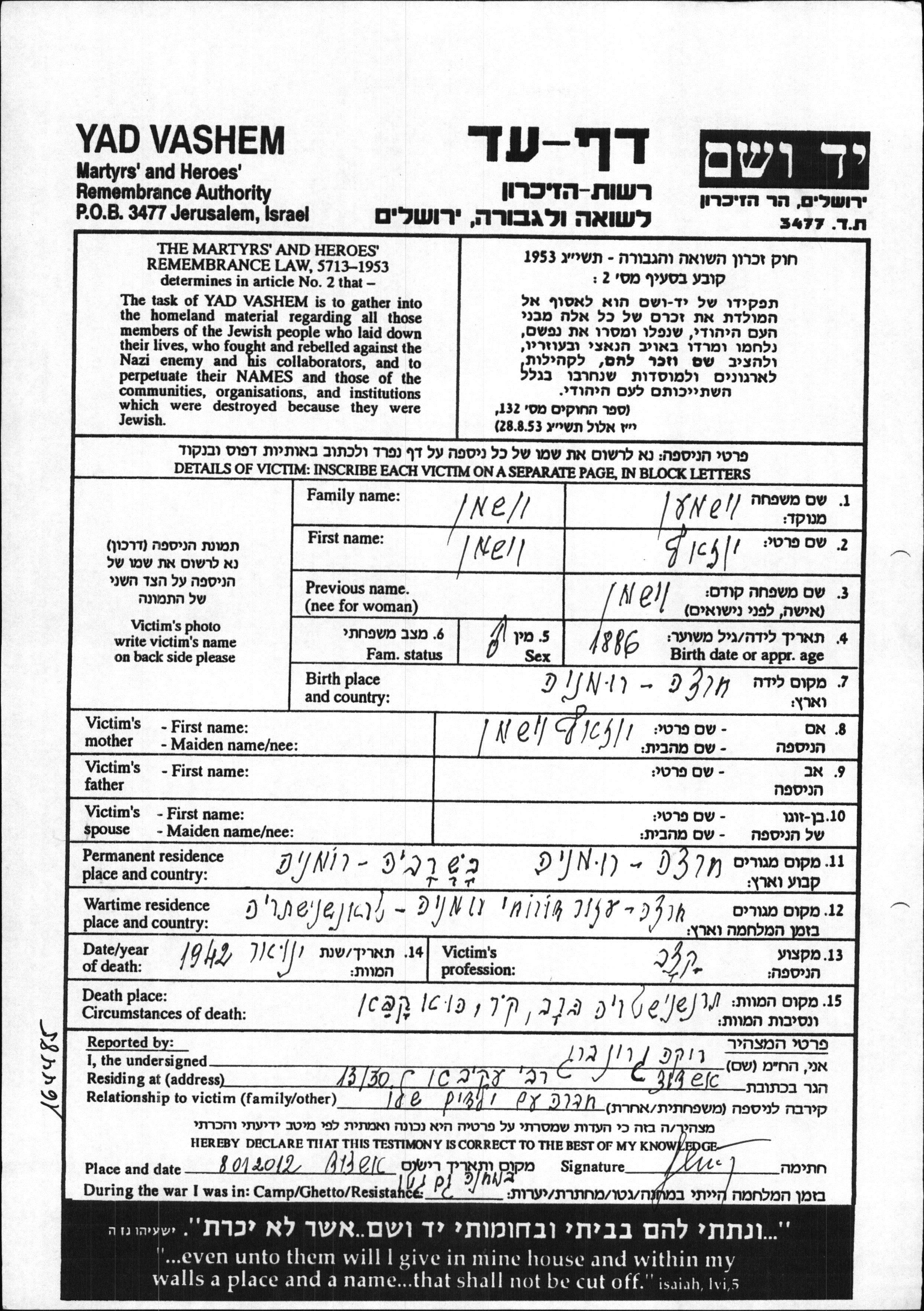 Yad Vashem - Colección conmemorativa de Hojas de Testimonio