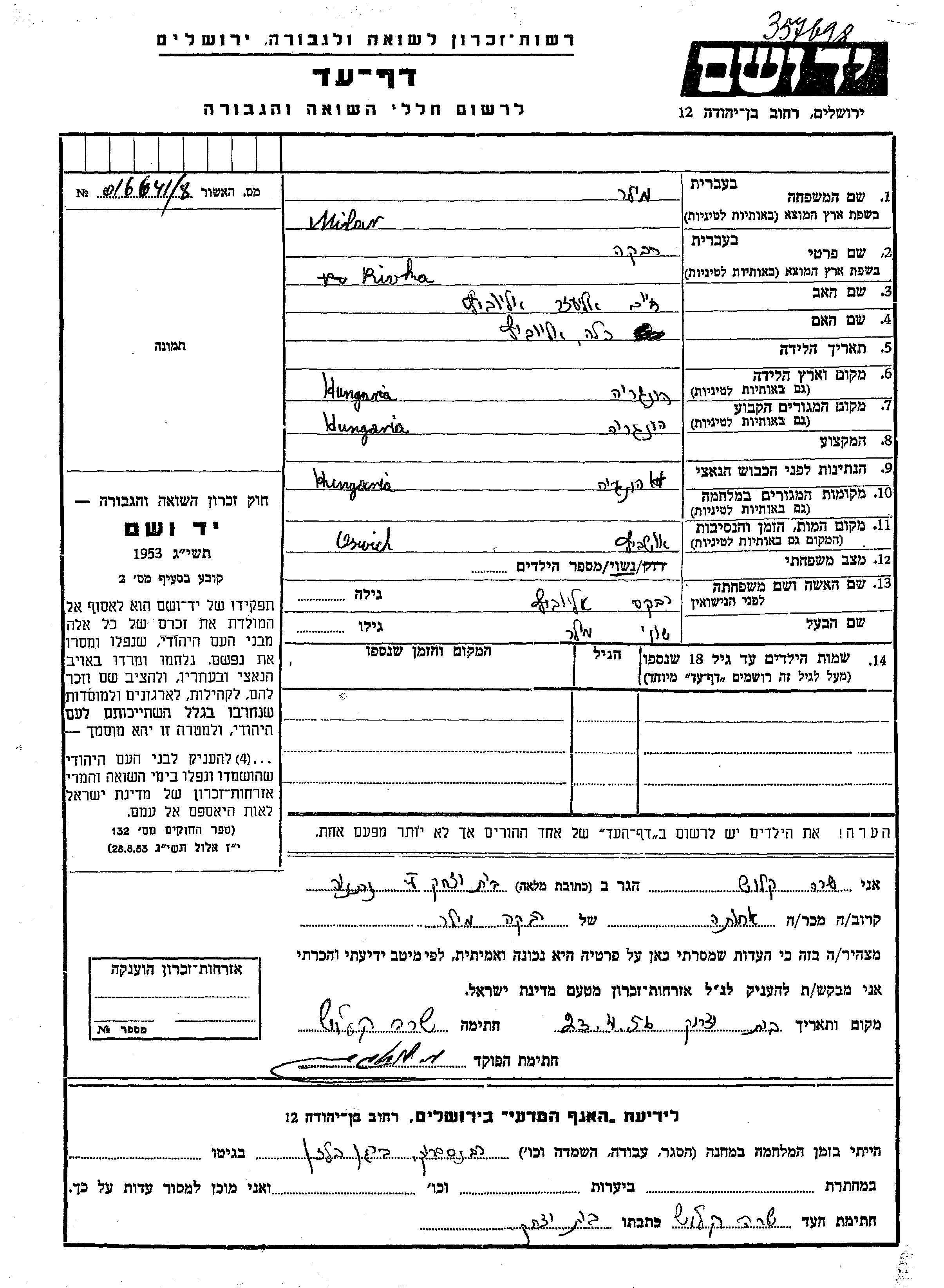 Yad Vashem - Colección conmemorativa de Hojas de Testimonio