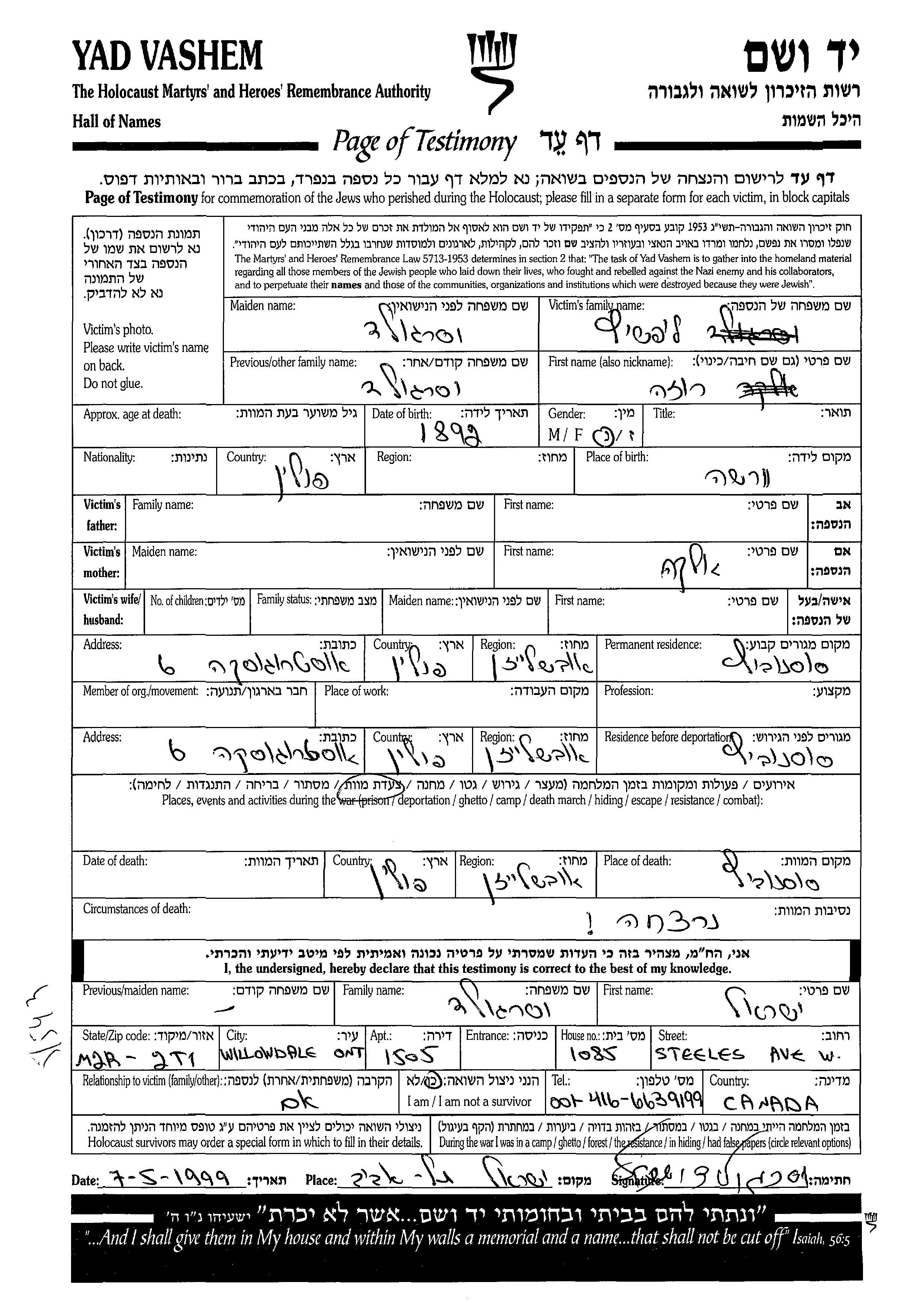 Yad Vashem - Pages of Testimony Names Memorial Collection